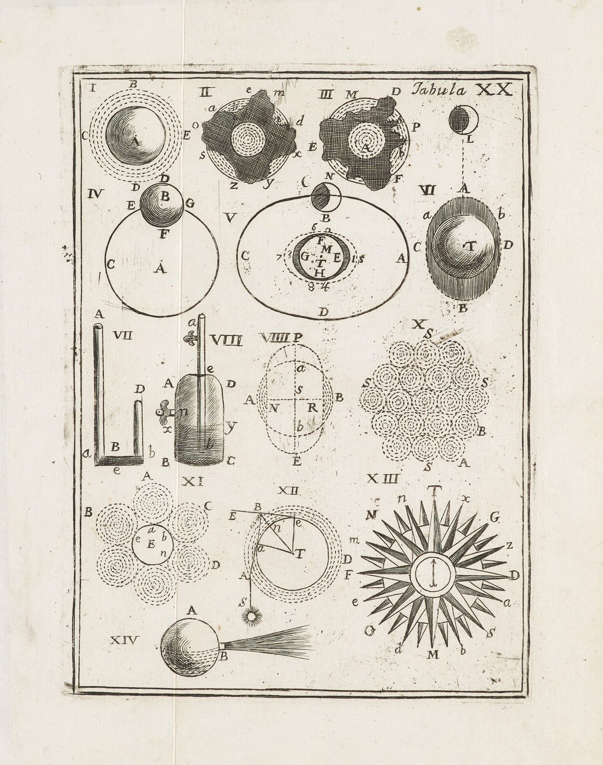 Naturwissenschaften – Jöcher-Adelung VI, 1178. - Poggendorff I, 737. - Mit handschriftlichem Besitzvermerk des Klosters des heiligen Antonius von Padua. - Stempel der Bibliothek des "Conventus Bajensis". - Girolamo Ferrari (1701-1754) war Professor für Mathematik und Philosophie in Brescia. Die Tafeln zeigen u.a. astronomische, physikalische Instrumente. - Teils fleckig, Ränder gebräunt. Insgesamt gut erhalten.