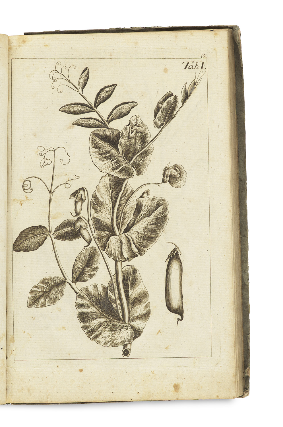 Naturwissenschaften – Mit Stempel des akademischen Gymnasiums in Wien. - Tafelband zu Mehlers Werk "Fortsetzung des böhmischen Ackerbaues (etc.)" (1795), das seinem "Der Ackerbau des Königreichs Böhmen (1794) gefolgt war. Johann Josef Mehler (1739-1809) war Jurist und Agrarökonom und Verwalter der Fürsten Colloredo-Mansfeld. - Schöne, detaillierte Abbildungen wirtschaftlich nutzbarer Pflanzen wie Hanf, Hopfen, Rüben, Kohl, Getreide usw. - Ränder leicht gebräunt und leicht stockfleckig. Ingsesamt sehr gut erhalten.
