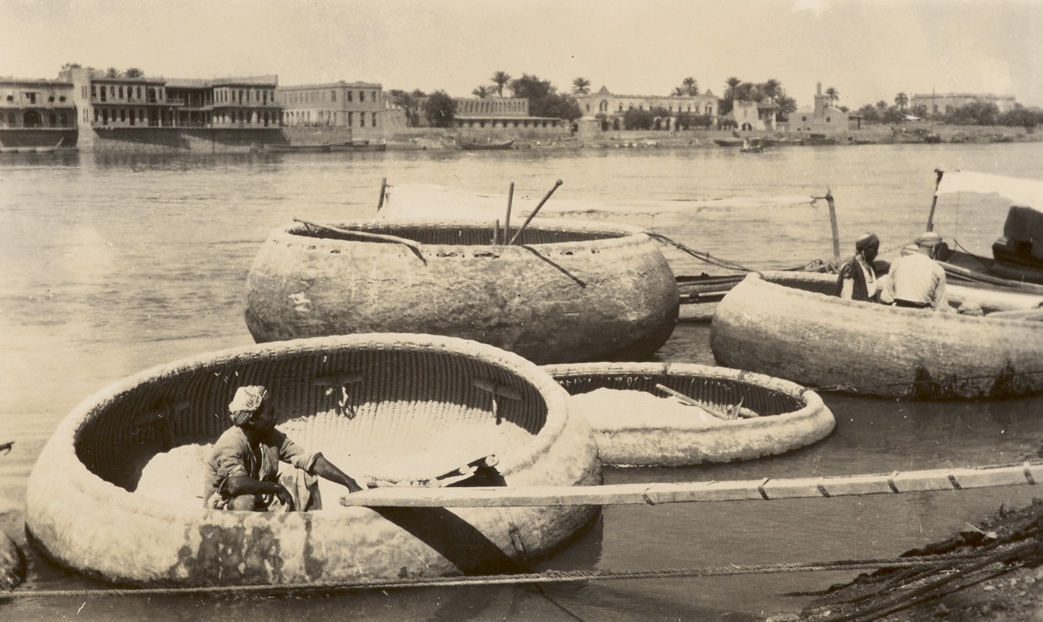 Photography – Iraq - Collection of 13 original photographs of a journey through Iraq and of excavations by the German Ctesiphon expedition. Around 1930. Vintages, (bromine) silver gelatin. Each mounted on a backing in spots. - Verso on the prints or on the backing with handwritten inscriptions. - Showing among others Guffas (Kuphars) on the Tigris, natives, mountain landscapes, Tigris, Ctesiphon, rest with automobile at the Euphrates. - Some with autograph. ownership note a. partly mounted descriptions by Dr. Gottfried Ganßauge (1900-1988), author of: The German Excavations in Ctesiphon. In: Die Umschau 35 (1931), pp. 834ff. - Partly somewhat worn. Documents partly brown-stained. Overall in good condition.