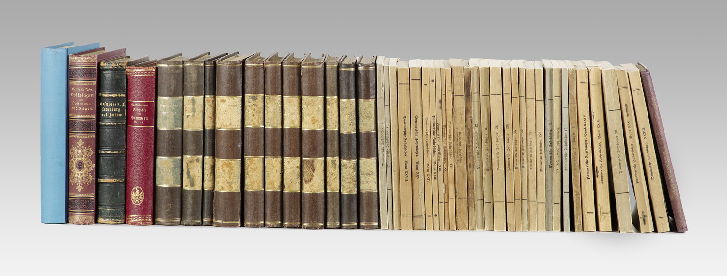 Umfangreiche Sammlung von Literatur zur Geschichte von Pommern. Mit zahlreichen Abbildungen.