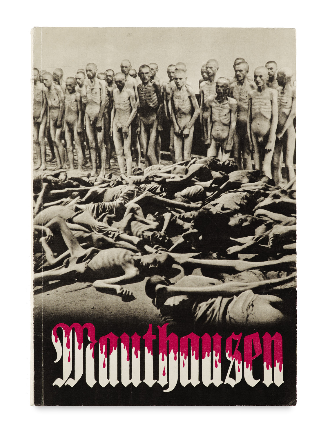 History – National Socialism - With 86 black-and-white photographs. Paper with photographic front cover (slightly rubbed and bumped). - First edition. - Text in Czech, typographic layout by Zdenek Rossmann. Published by the members of the Committee of the Illegal Communist Party of Czechoslovakia in Mauthausen. - An early publication about the Holocaust. The booklet depicts the horrors of the Austrian concentration camp Mauthausen-Gusen. Most of the photographs document the horror of life and death in Mauthausen and show the prisoners murdered by the Nazis. The remaining photographs show the camp facilities, the town of Mauthausen, and the surrounding area. - Overall, well preserved.