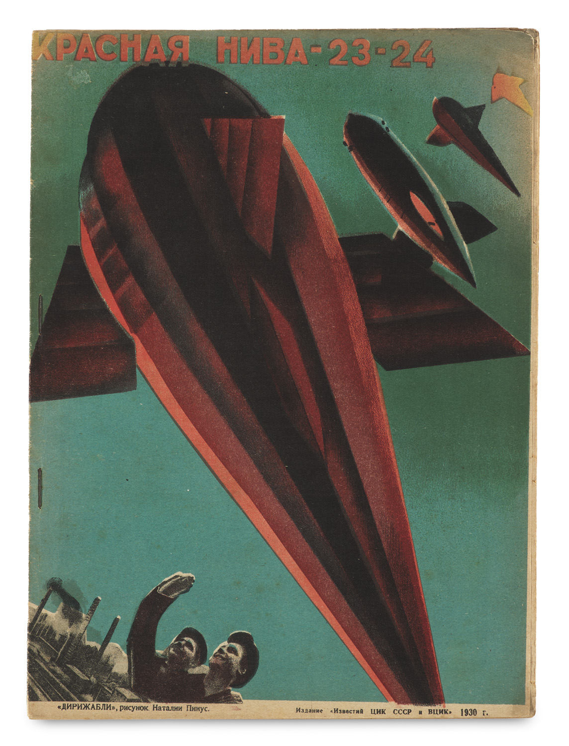 Krasnaja Niva. (Rotes Getreidefeld). Hg. v. Anatolij Lunatscharskij u.a. Jg. 8, Nr. 7 (8. Mai 1930). Umschlag in Farblithographie und Offset mit Photomontage von Natalija Bucharowa, im Druck bezeichnet. Moskau, Verlag der Iswestija, 1930. 19 (1) S. Gr.-4°. (30,5 x 23). Mehrfarb. OBrosch. in Klammerheftung (Rücken gering lädiert).
