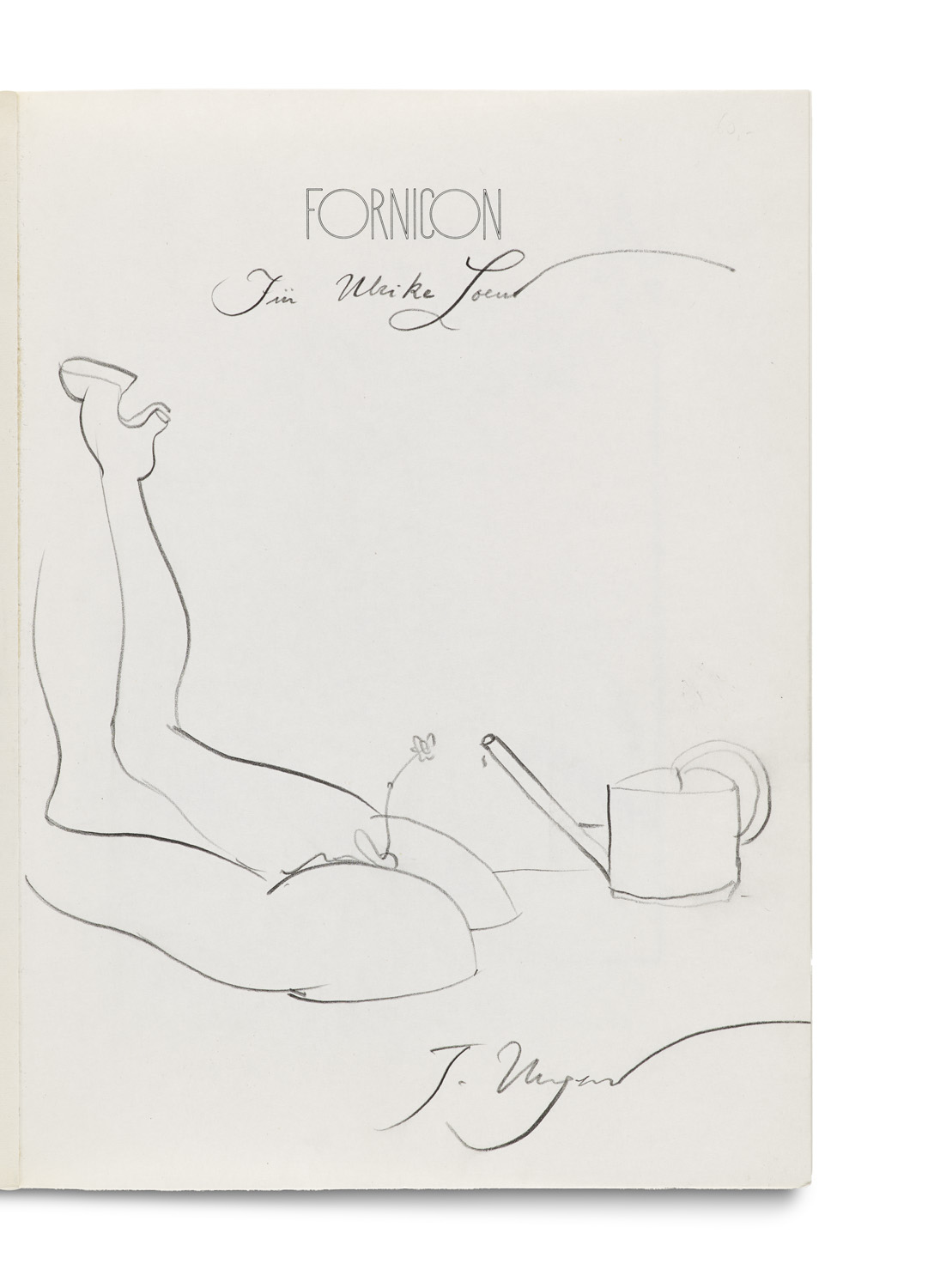 Fornicon. Vorwort von Walther Killy. Mit einer signierten Original Zeichnung auf dem Vortitel, sowie 60 Tafeln. Zürich, Diogenes, 1970. 3 Bll. 4°. Broschur mit OUmschlag (leicht bestoßen).