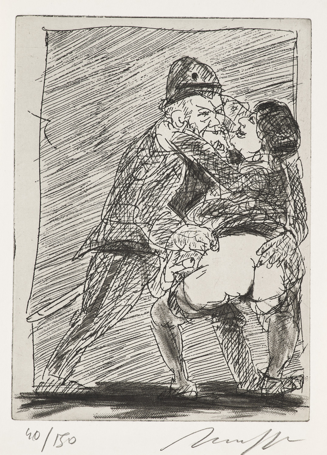 Woyzeck. Nach den Handschriften neu hergestellt von Henri Poschmann. Mit Bildern von Alfred Hrdlicka, und Beitragen von Hans Mayer, Henri Poschmann und Theodor Scheufele. Mit 4 sign. ORadierungen. Frankfurt u. Wien, Büchergilde Gutenberg, 1991. 4°. 243 S., 2 Bll. OLwd. im ill. OU und Karton-Mappe in ill. OPp.-Schuber.