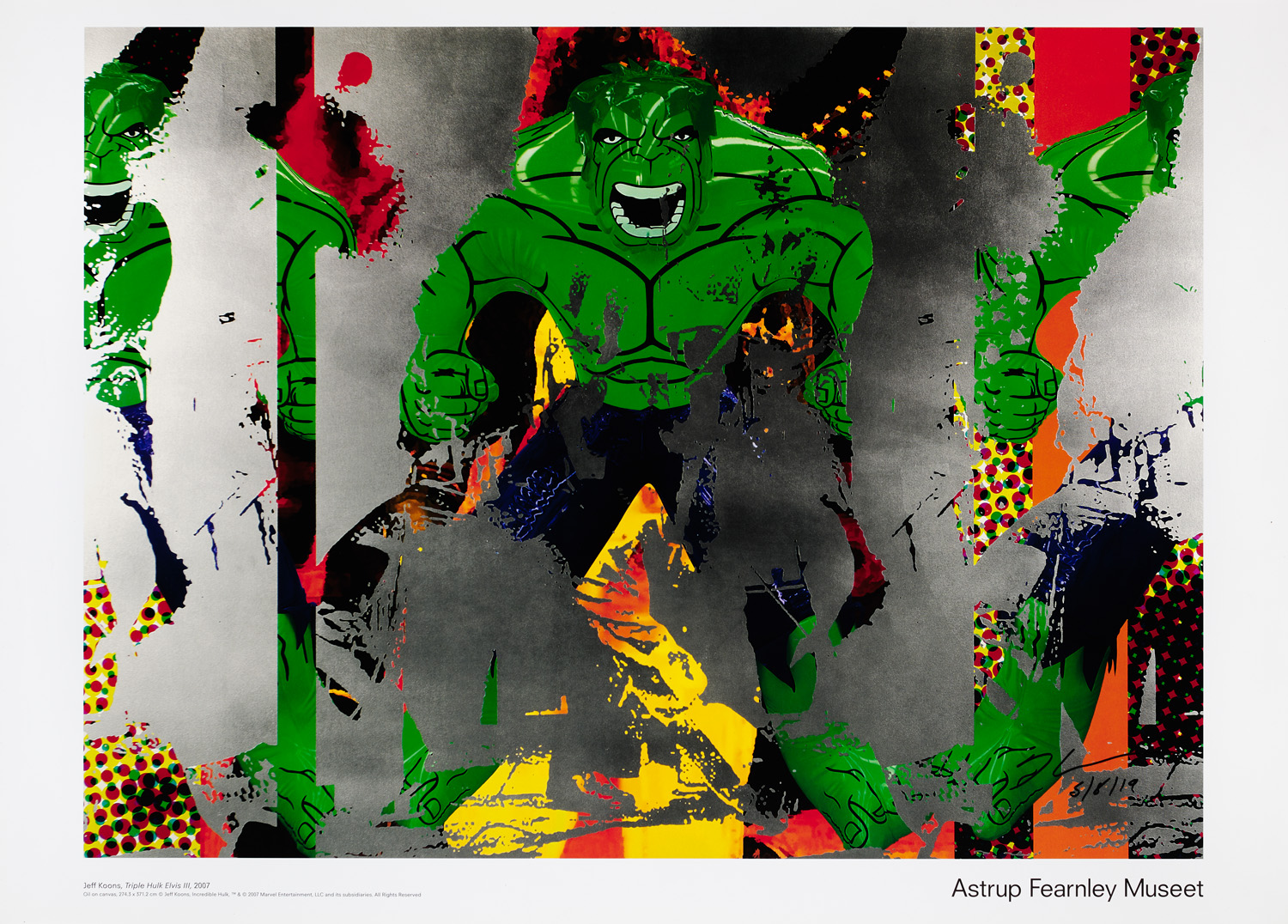 Online - Moderne und zeitgenössische Kunst – Das Plakat zeigt Koons Originalwerk (Öl auf Leinwand) "Triple Hulk Elvis III", 2007 und erschien anlässlich einer Ausstellung im Astrup Fearnley Museum, Oslo.