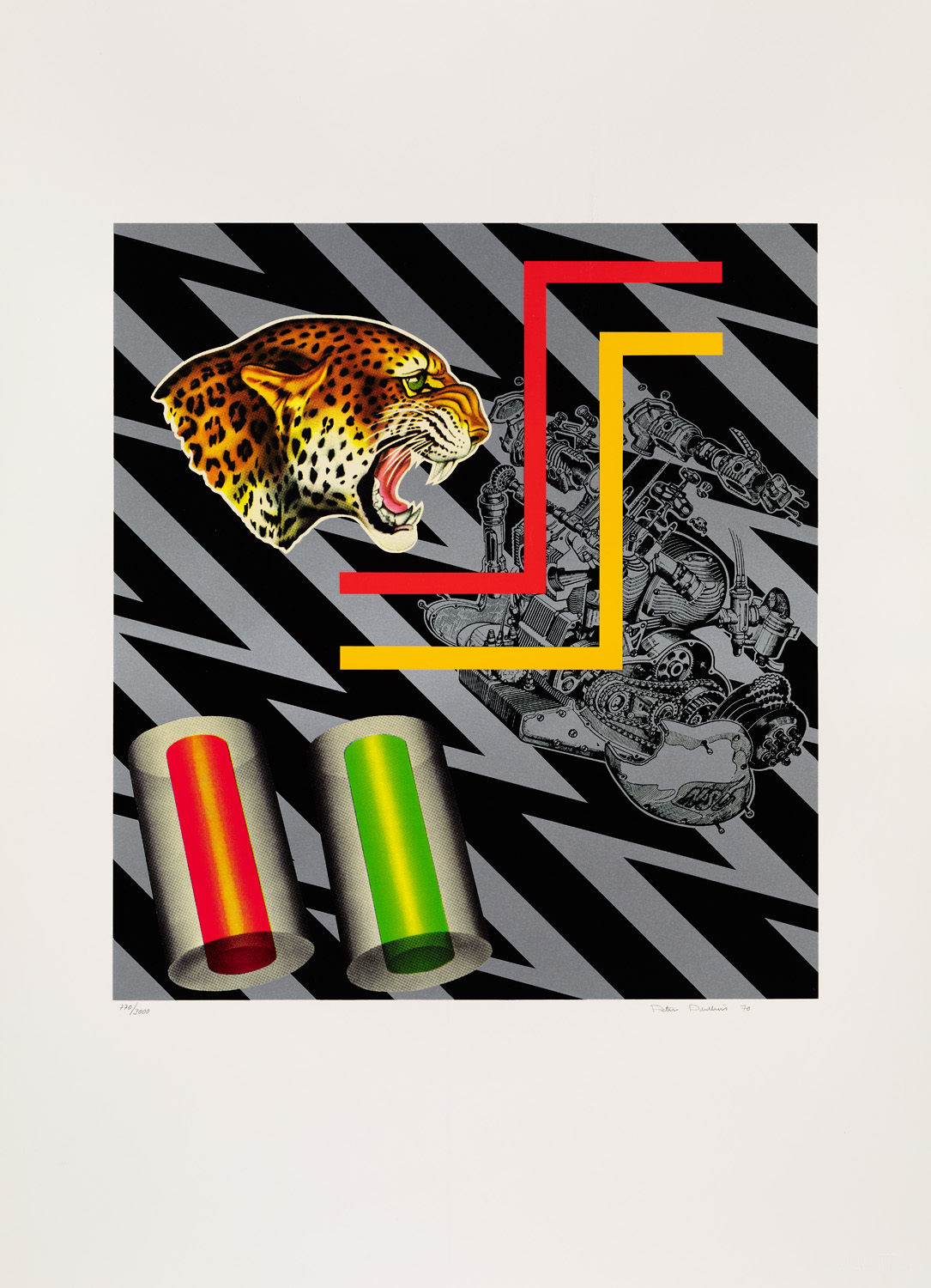 Leolocation. 1970. Farbserigraphie auf leichtem Velinkarton. 54 x 49 cm (90 x 65,5 cm). Signiert, datiert und nummeriert. - Nur die Ecken minimal und kaum merklich bestoßen. Insgesamt sehr gut. Prachtvoller und satter Druck der Darstellung mit Rand.