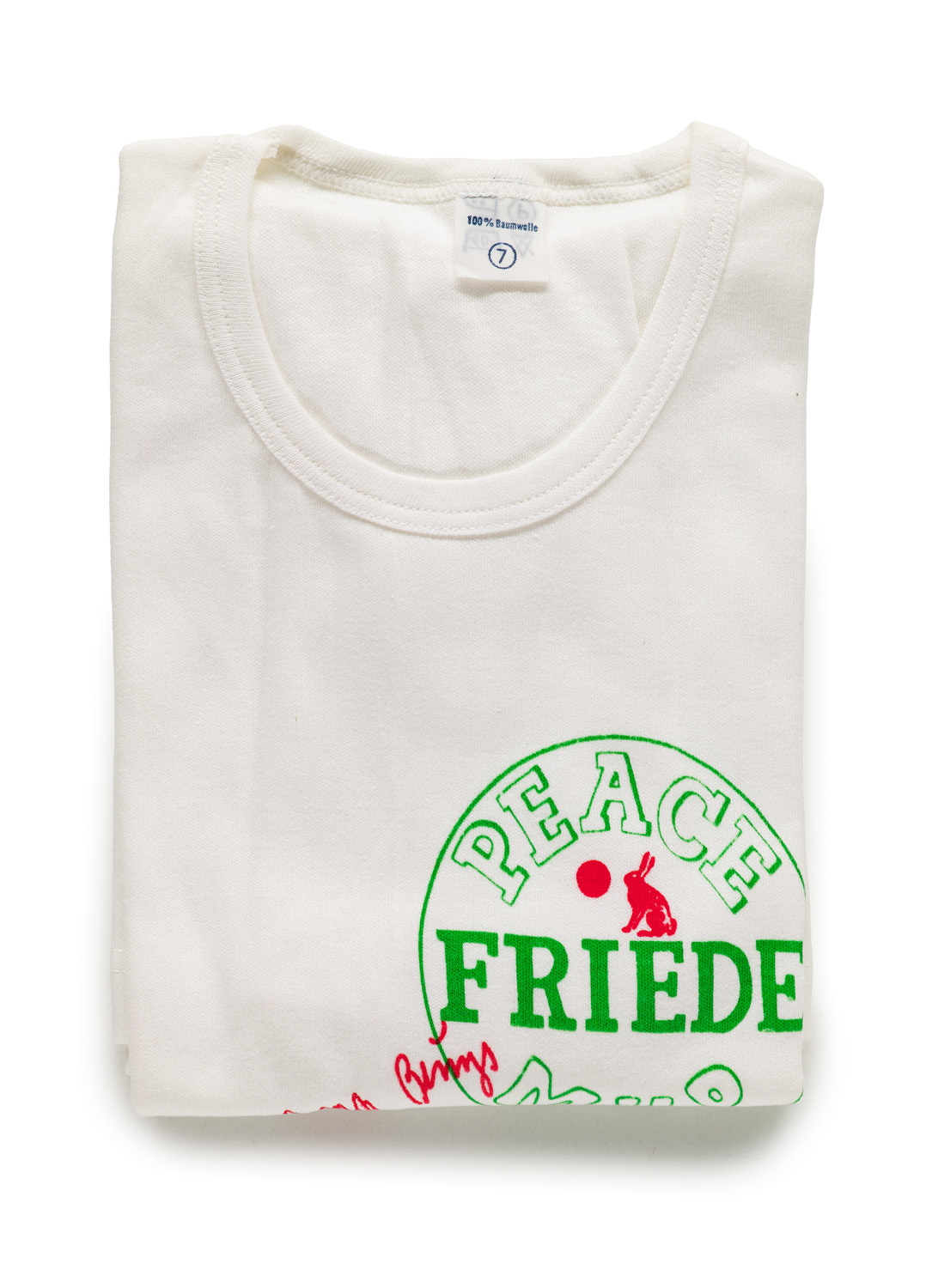 Online - Modern and Contemporary Art – T-shirt with the slogan 'Peace Friede MHP' and the artist's printed signature. Inserted in a plastic bag. - In original fold, very well preserved. - Designed in the context of documenta 7, 1982, where it was distributed during a happening by Joseph Beuys.
