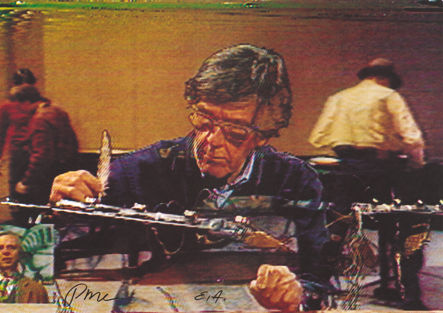 Online - Modern and Contemporary Art – Colour offsetlithograph on light wove card. Signed and inscribed "E.A." - In the margins partly slightly rubbed, the corners somewhat bumped, here also minimally and barely noticeable creased. Very good overall. Splendid and colour rich impression of the full format depiction.