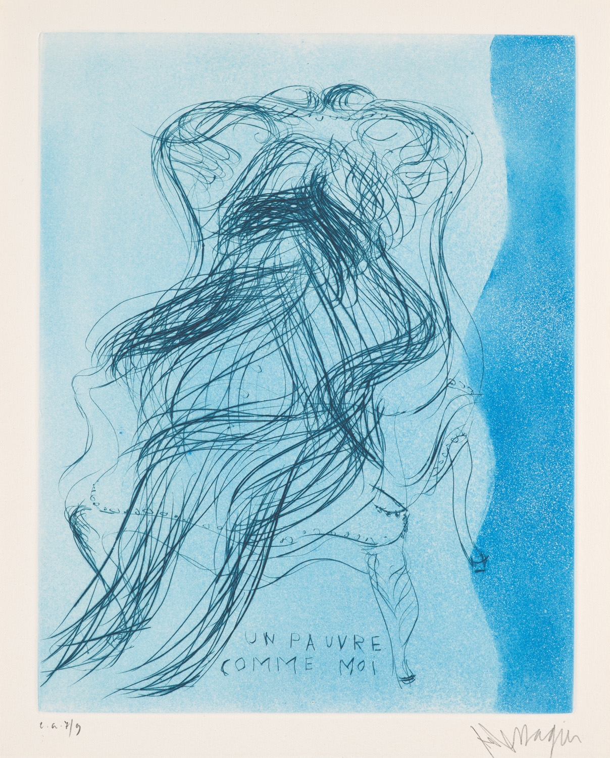 Un autre ami IV. Radierung in Braun und Violett auf festem Vélin. 28,8 x 22,6 cm (32,2 x 26,4 cm). Signiert, bezeichnet und nummeriert. Ausgezeichneter, gratiger Druck mit körnigen Plattenton, mit Rand, unten und rechts mit dem Schöpfrand.