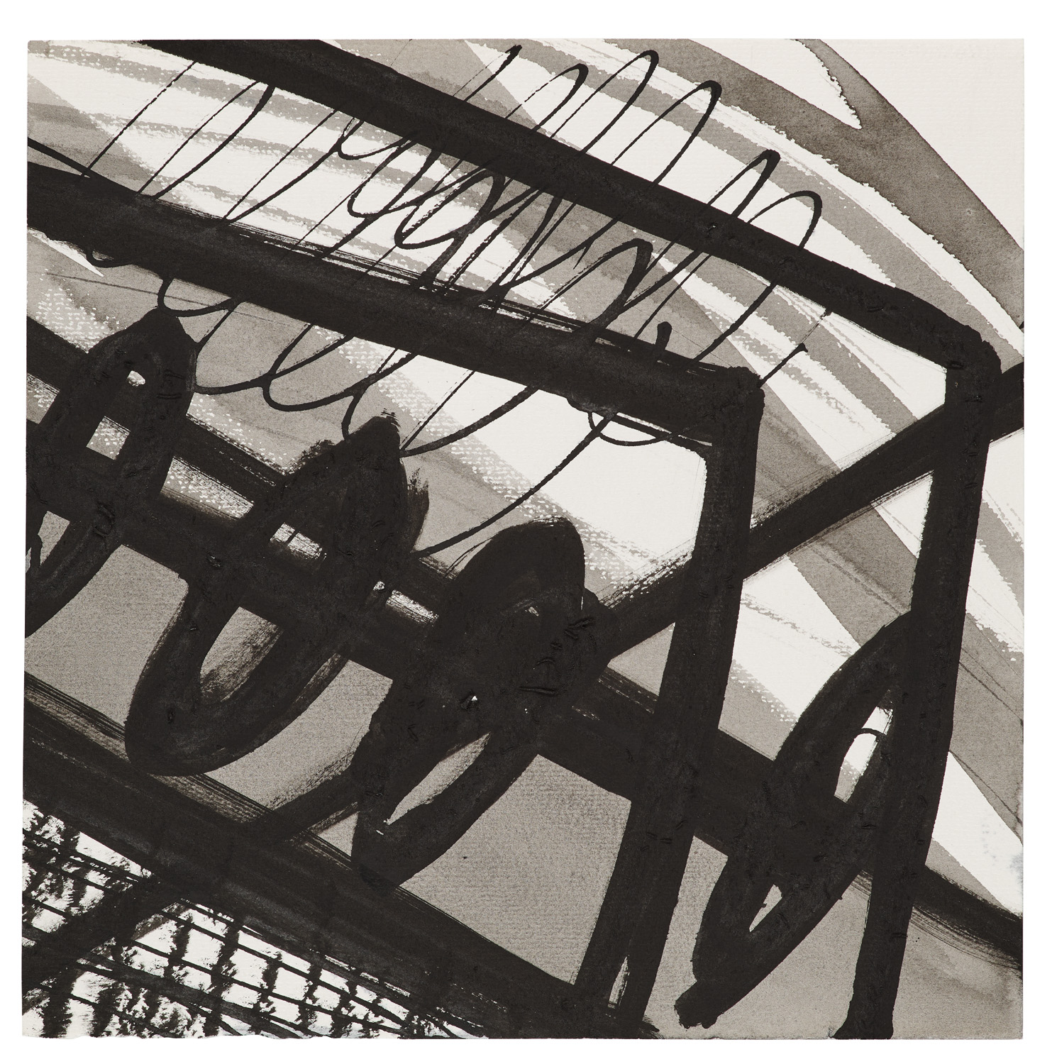 o.T. (Informelle Komposition). 2003. Tusche teils laviert auf Velin. 29,2 x 29,5 cm. Verso signiert und datiert. - Im Motiv material- und technikbedingt mit leichter Papieraufreibung, verso atelierspurig. Insgesamt sehr gut. Kräftige, ausdrucksstarke und schwungvolle Arbeit.