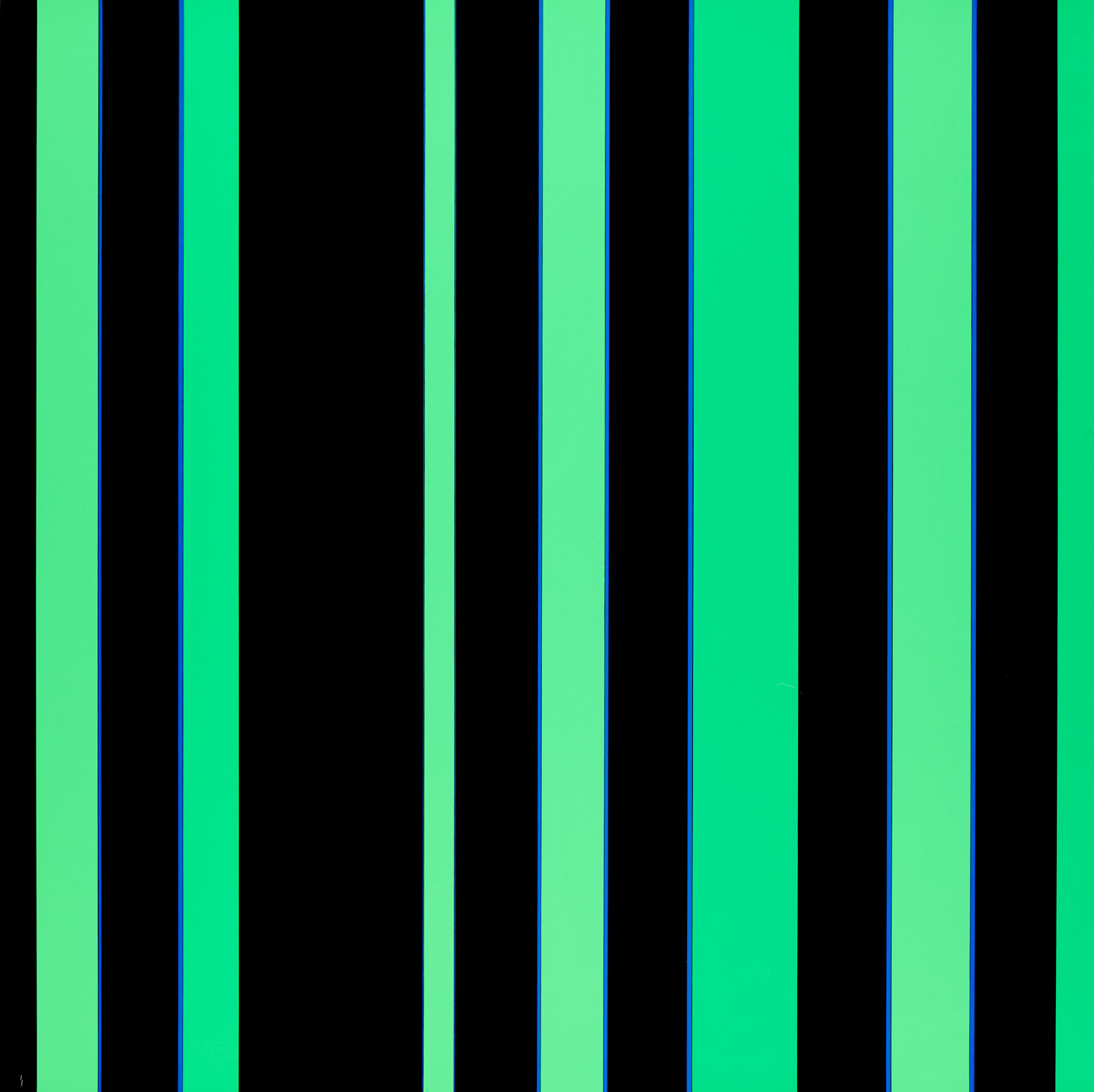 Drei Grün. 1970/71. Farbserigraphie auf Velinkarton. 62 x 62 cm. Verso signiert. - Sehr leichte Bestoßung an den Rändern, punktuelle Knickspur unten links und oben mittig rechts, sehr kleine Bereibung im Motiv, im Streiflicht erkennbar. Insgesamt sehr gut. Prachtvoller Druck mit satter Farbintensität der bildfüllenden Arbeit.