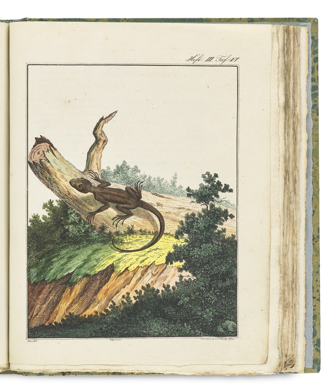 Naturwissenschaften – Sehr selten. - Nissen ZBI, 2792. - Vanzolini I, 9. - Eins von drei Heften. - Die Hefte, die von dem deutsche Biologen Blasius Merrem (1761-1824) geschrieben wurden, waren ursprünglich als eine vierteljährliche Publikation über seltene Tiere, Pflanzen und Mineralien gedacht. Jedoch wurden über die Jahre aufgrund gesundheitlicher Problem von Merrem insgesamt nur drei Hefte publiziert. Die ersten beiden Hefte wurden auf Kosten von Merrem selbst in Duisburg und Lemgo herausgebracht, das dritte Heft im Jahr 1821 in Essen bei Baedeker. Merrem hatte sich auf die Gebiete der Herpetologie und Ornithologie spezialisert und lehrte seit 1782 an den Universitäten in Göttingen, Duisburg und Marburg. - Ränder leicht gebräunt. Tls. minimal fleckig. Insgesamt sehr gut erhaltenes Exemplar mit prächtigen Tafeln in kräftigem Kolorit.