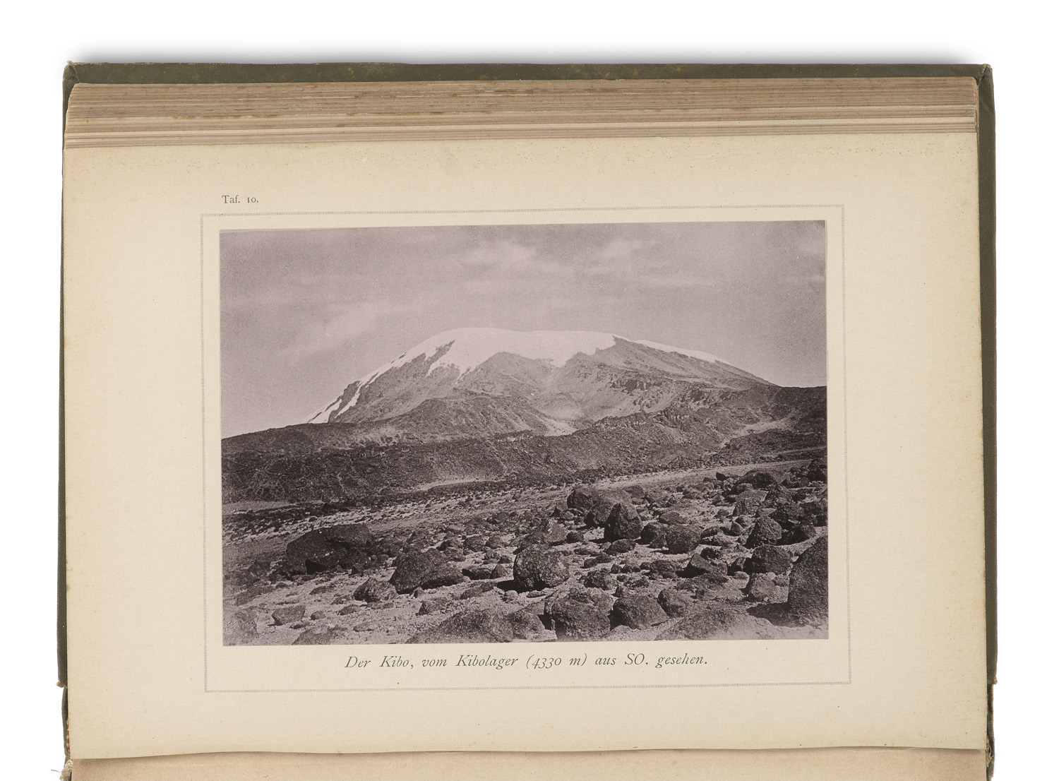 Ostafrikanische Gletscherfahrten. Forschungsreisen im Kilimandscharo-Gebiet. Mit 3, wovon 1 gefalt. u. 2 doppels. farblithograph. Karten, 20 Tafeln zumeist nach Photographien in Heliogravüre und Lichtdruck und 19 Textabb. Leipzig, Duncker u. Humblot, 1890. XVI S., 1 Bl. (Kapt.Tit.), 376 S. Gr.-8°. Reich illustr. OLn. (Graph. Anstalt Weissbeck u. Bechmann, Lpz.) mit kalligr. Tit. in Gold- u. Schwarzprägung, Vors. aus Wachspapier u. marmor. Schnitt.