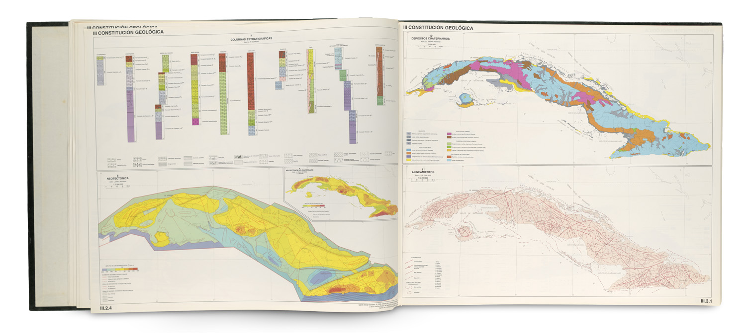 Geography and Travel – Caribbean. - Comprehensive atlas of Cuba, with over 600 detailed maps on approx. 200 pages. The content of the atlas is collected in 24 sections and includes the characterisation of natural and socio-economic resources, its spatial distribution, its complexity and the expression of its territorial combinations.