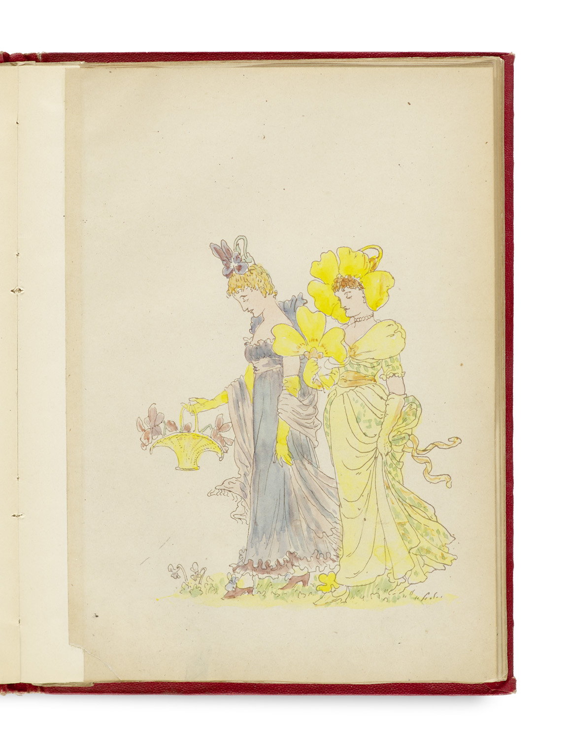 Album mit 40 Aquarellzeichnungen nach Walter Cranes "Flora Feast". Um 1900. 4°. Rote Lwd. (berieben und bestoßen, minimal fleckig).