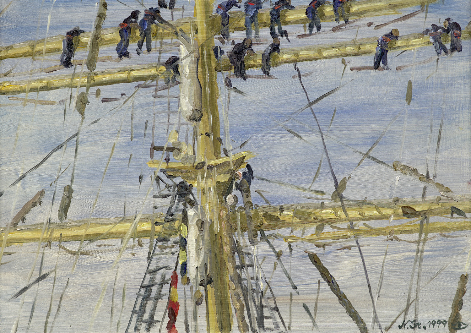 Segelmast. 1999. Öl auf Hartfaserplatte. 21,5 x 30,5 cm. Monogrammiert und datiert. Insgesamt sehr gut, die Farben frisch.