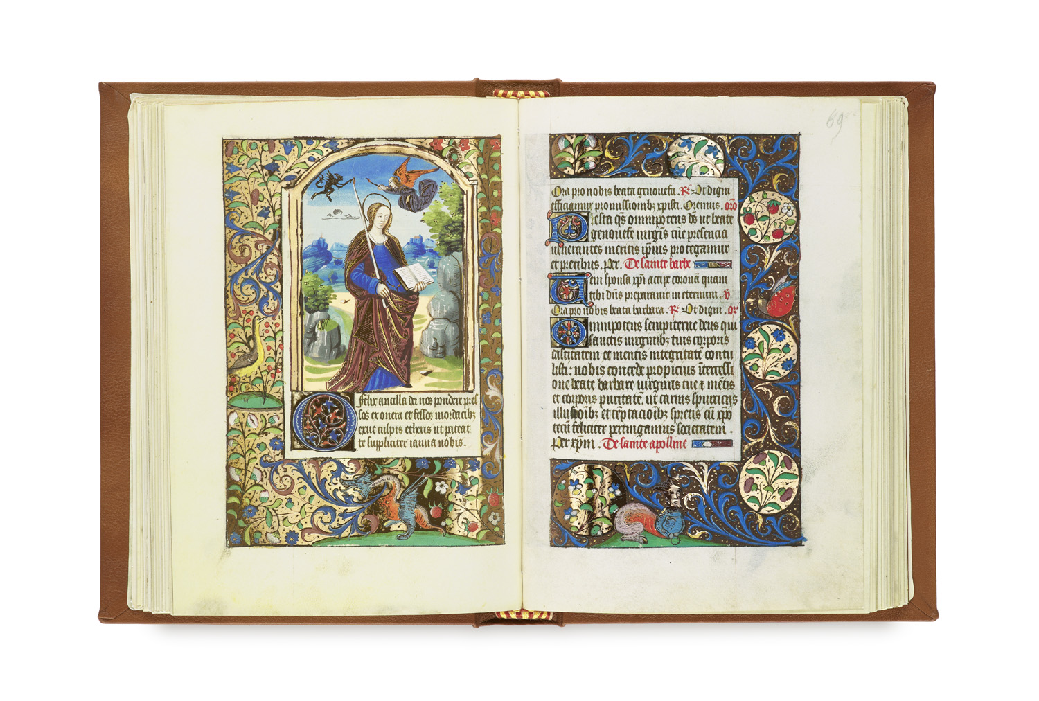 Libro d'Ore di Gregorio XIII. Faksimile der Handschrift Ms. Vat. lat. 3767 aus der Biblioteca Apostolica Vaticana. 2 Bde. (Faks. u. Komm.) sowie zwei Schriftrollen. Modena, ArtCodex, O.J. (2015). OLdr. mit Wappensupralibros aus Metall und OPp. in OKunstldr.-Kassette mit goldgepr. Titel und mont. Namensplakette in Beutel (leicht berieben).