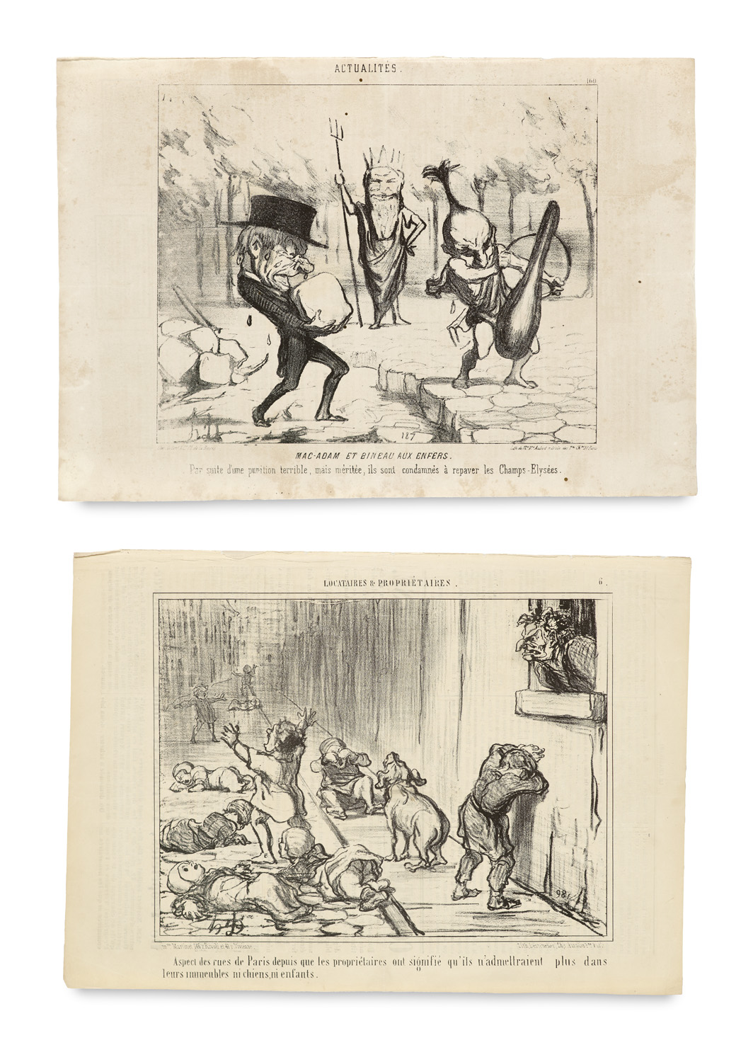 Literature of 17th to 19th Century – A collection of approximately 120 original caricature lithographs, mostly from *Charivari*, circa 1860. (some are slightly browned or stained, while others have small stains along the edges). - An extensive collection of Daumier's caricatures, a cornerstone of modern political caricature.