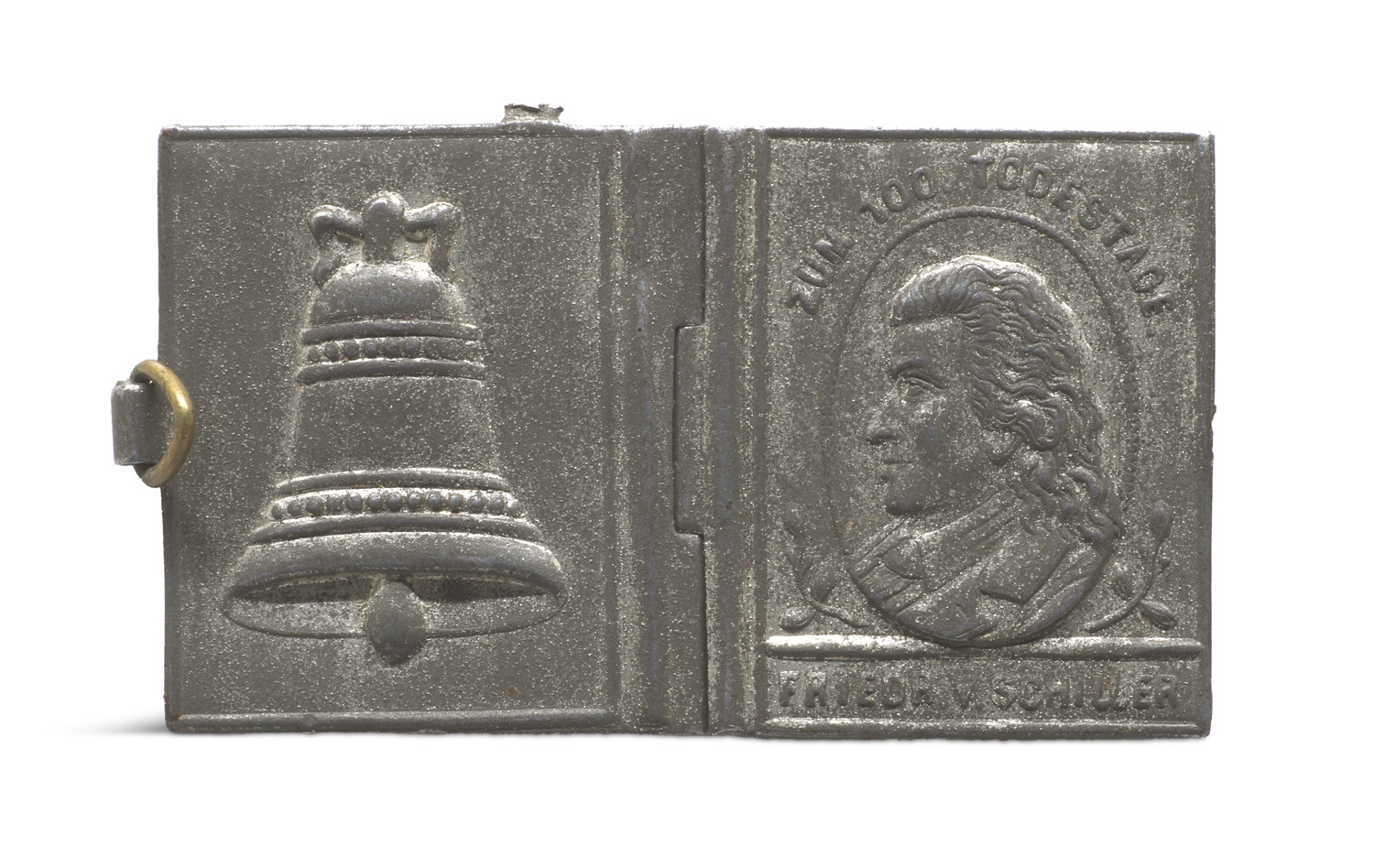 Literatur des 17. bis 19. Jahrhunderts – Enthält: Das Lied von der Glocke. o.O., o.Dr., 1905. 2,5 x 2 cm. Metalleinband mit geprägtem Porträt des Autors recto und geprägter Glocke verso (etwas oxidiert). - An die Freude. Anfangs- und Schlußworte. Schiller - Goethe, miteinander und übereinander, zitiert aus ihren Briefen. 3 Bände. Marbach, Schillerverein, 2000-2002. 5,5 x 4 cm. Je Leporello mit zwei Holzdeckeln, je in Pp.-Schuber. Zusammen eingelegt in Kunstleder-Kassette mit goldgepr. Deckeltitel. - Der Taucher. Berlin, Spengler, 2005. 5 x 3,5 cm. OPp. in OUmschlag und -Schuber. - Friedrich von Schiller, 1759-1805. Berlin, Spengler, 2005. 5 x 3,5 cm. OKunstleder in Pp.-Schuber. - Was heißt und zu welchem Ende studiert man Universalgeschichte. Eine akademische Antrittsrede bey Eröfnung seiner Vorlesungen gehalten von Friedrich Schiller. Berlin, Spengler, 1995. Grauer OLeder in Pp.-Schuber (Rücken verfärbt).