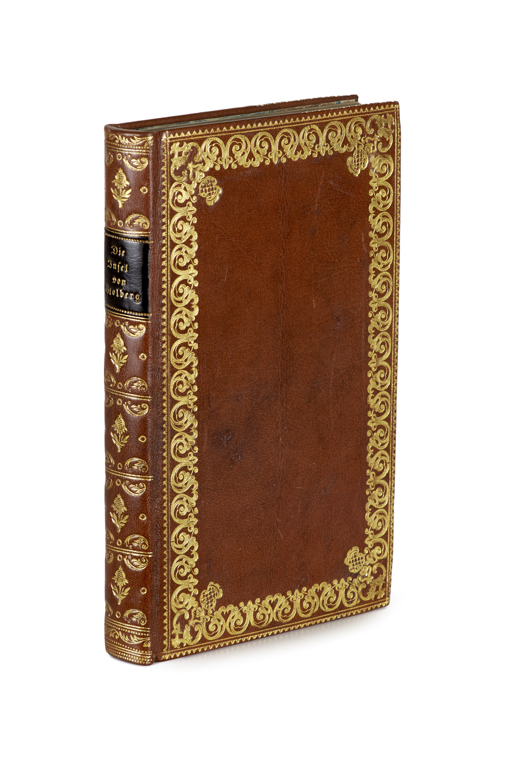 Literature of 17th to 19th Century – Leather with Gold stamped spine label, gilt spine, rich ornamental border on cover and standing edge gilding, as well as color edge (minimally rubbed). - First edition. - Stolberg's idyllic utopia consists of two parts. In the first part, philosophical dialogues develop the 'dream' of an island where a life of 'happy, pious, free simplicity' and Christian community would make it possible to educate a new human race. The second part offers samples of the noble and simple 'island poetry', which clearly reflect the influence of Klopstock and the Göttingen Hainbund. - Minimal foxing. Some slight water stains. Overall in very good condition.