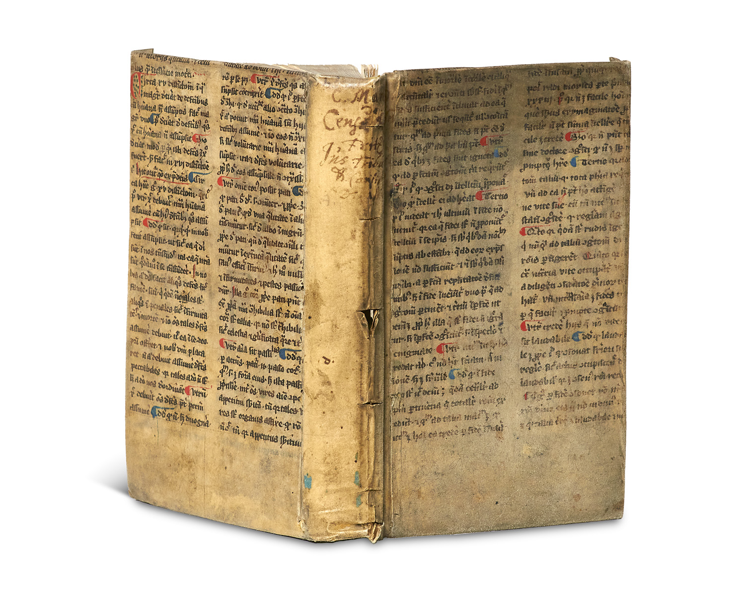 History – Very rare, no copy can be proven by us in international trade. - Vellum with mounted manuscript sheet with rubricated initials (13th/14th century) and ms. title to spine (dusted, soiled and slightly rubbed spine with tears). - Title with backed missing place, first 3 sheets with brown spots, endpapers and first 3 sheets slightly wormed.