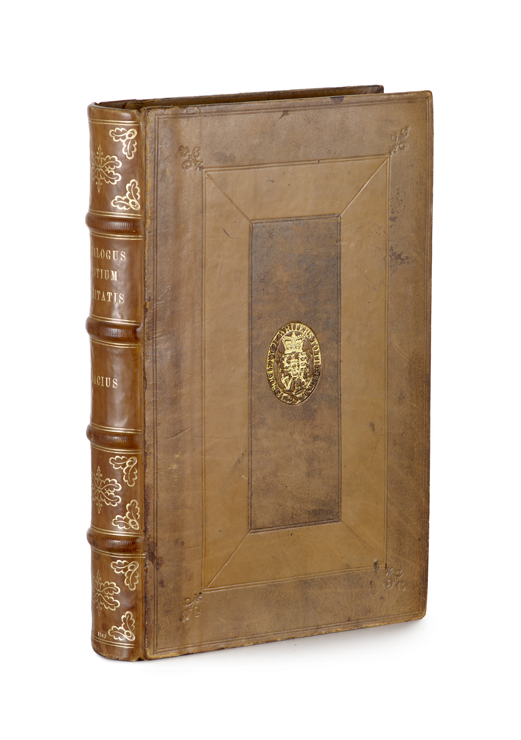 Catalogus testium veritatis, qui ante nostram aetatem Pontifici Romano eiusque erroribus reclamarunt. Straßburg, 1562. 6 Bll., 586 S., 6 Bll. Index, 1 w. Bl., 58 S. Brauner Kalbsledereinband der Society of the Writers to the signet mit Goldprägung und RVergoldung (Deckel restauriert, etwas berieben und beschabt).