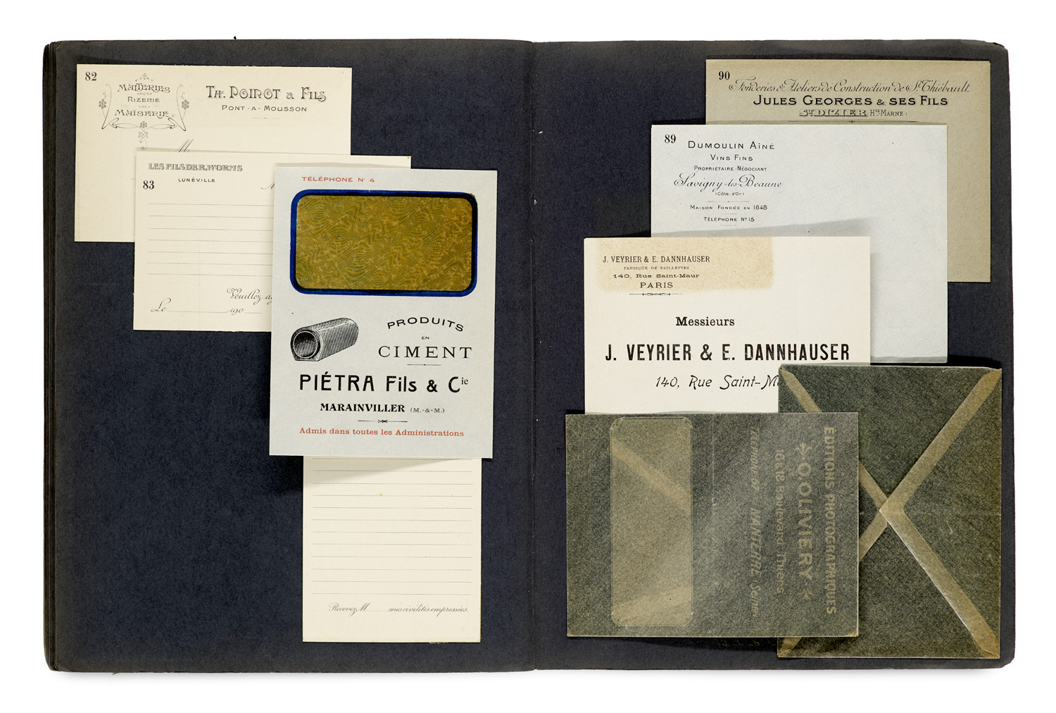 Moderne Literatur und Kunst – Enthält: Razel fréres, Lunéville. Lithographie. Modèles Courants. Modèles très Soignés. 2 Tle. in 1 Bd. - Schlumpf frères, Winterthur. Etiketten. - Insg. wohlerhalten.