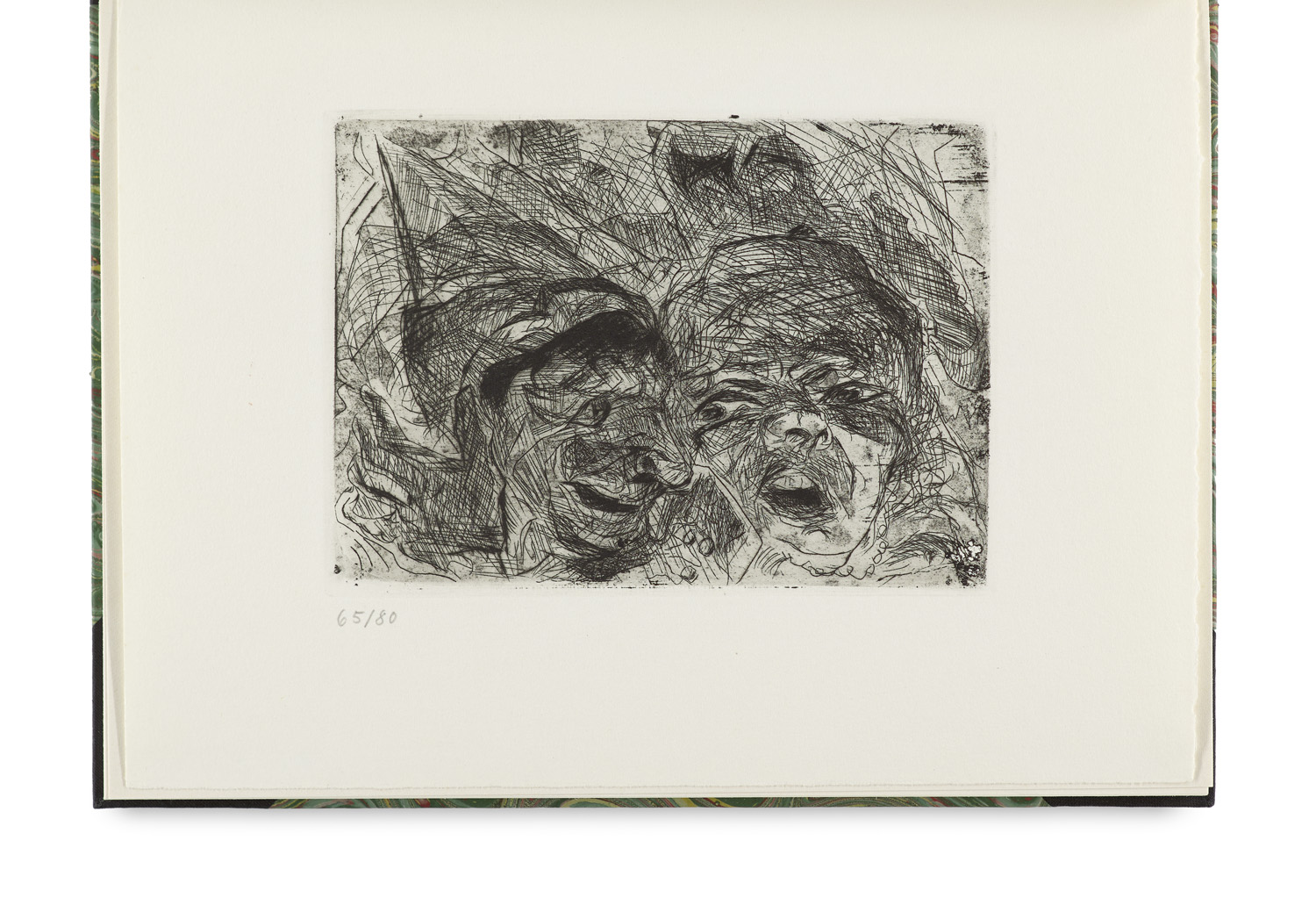 Moderne Literatur und Kunst – Eins von 80 num. Exemplaren der Ausgabe A1 mit der Orig.-Radierung "Theater" von 1916 auf Bütten mit der Signatur Peter Beckmanns (Sohn des Kunstlers) und verso mit Nachlassstempel. - Dabei: Swift, Gullivers Reise ins Land der Riesen. Mit 25 Or-Lithographien von Lovis Corinth. (Reprint der Ausgabe Berlin, Propyläen, 1922). Mit 1 Probedruck zur Tell-Suite. FFm., Ullstein, 1975. 4°. OHLwd. Ausgabe A2 in 51 numm. Expl., der Probedruck von Frau Mine Corinth Klopfer signiert, mit dem Nachlaßstempel und der Müller-Nr. versehen.