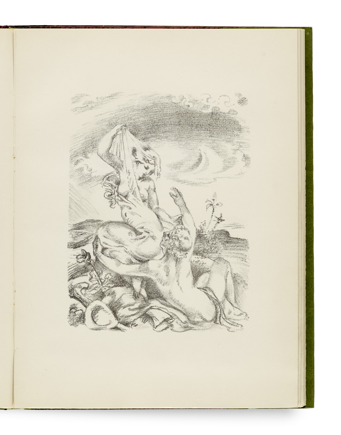 Die indische Harfe. Mit (teils farbigen) Or.-Steinzeichnungen von Bernhard Hasler. Berlin, Morawe & Scheffelt, 1913. 108 S., 1 Bl. 4°. Gemust. OLwd. im OUmschl. in OPp.-Schuber mit Deckelschild (Schuber mit kl. Einrissen).