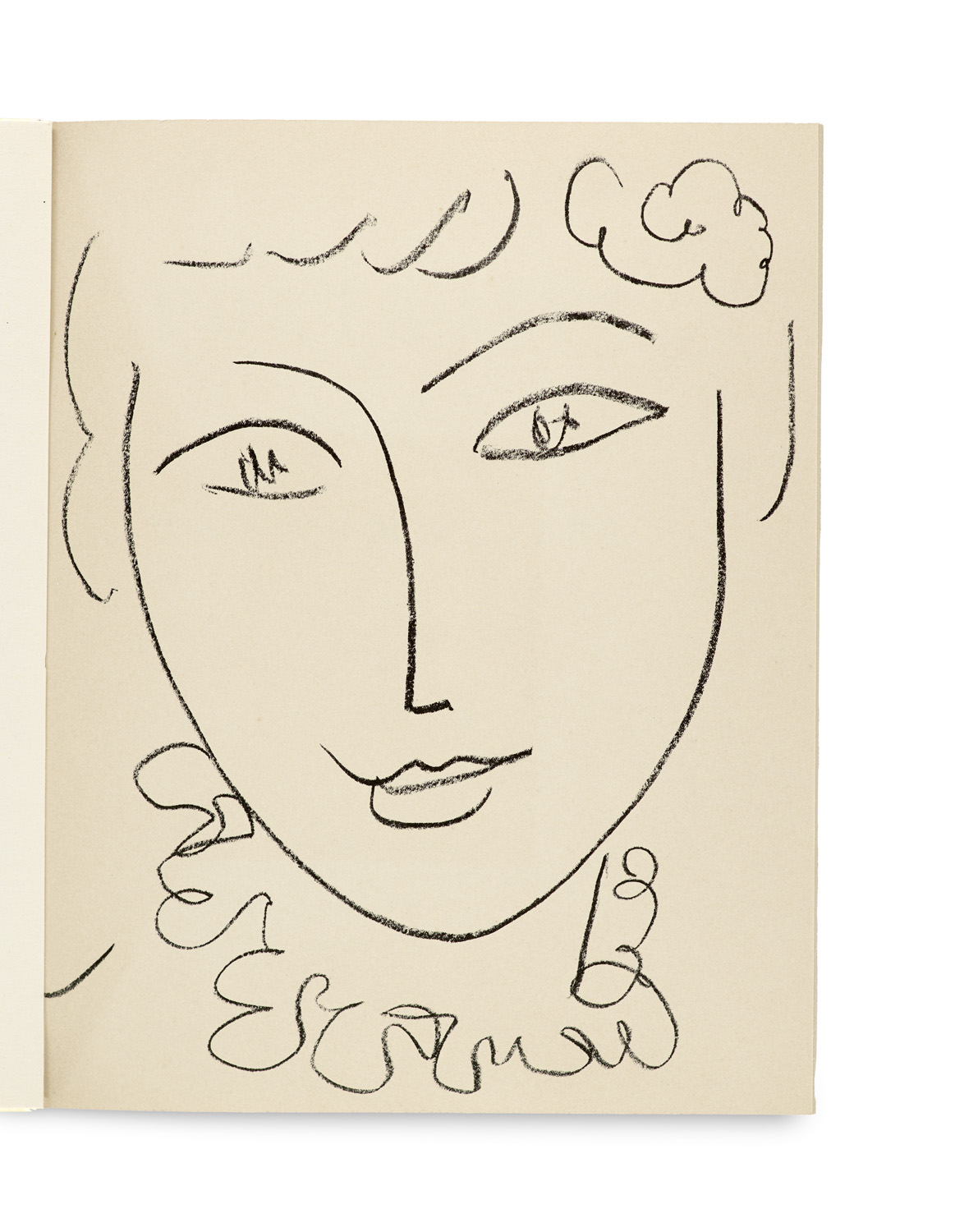 Moderne Literatur und Kunst – Bolliger IV, 457. - Duthuit (Livres Illustrés), 33. - Monod 7849. - Erste Ausgabe des bedeutenden Textes. In kleinerer nummerierten Auflage erschienen. Die Auswahl der gezeichneten, gestochenen und gemalten Porträts nahm der Künstler selbst vor. Matisse reflektiert in den Texten seine künstlerische Philosophie, betont Linearität und Farbharmonie in Porträts, wie in seinen Fauves-Werken oder späteren Scherenschnitten. Die Original-Lithographie "Pompadour" (oft als Porträt einer Frau im Stil der Marquise de Pompadour interpretiert) sowie die Tafeln zeigen Porträts von Modellen wie Henriette Darricarrère oder Lydia Delektorskaya, die seine Reduktion auf Essenz demonstrieren. - Sehr gutes Exemplar.