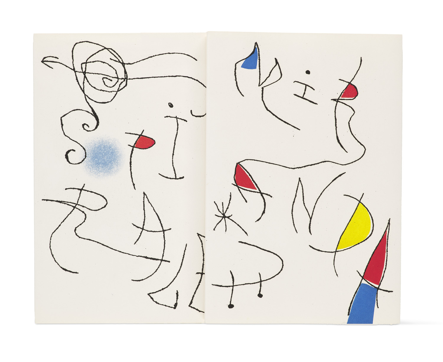 Modern Literature and Art – 2 vols. Loose sheets in illustr. orig. wrapper with 2 colour etchings by Miró as cover, in cardboard chemise with colour etching as illustrated label (minor browning) in cloth slipcase. - Unnumbered copy signed by the author on Vélin d'Arches (GA 200 copies). - Without the enclosed signed colour etchings by Miró. - Overall good condition.