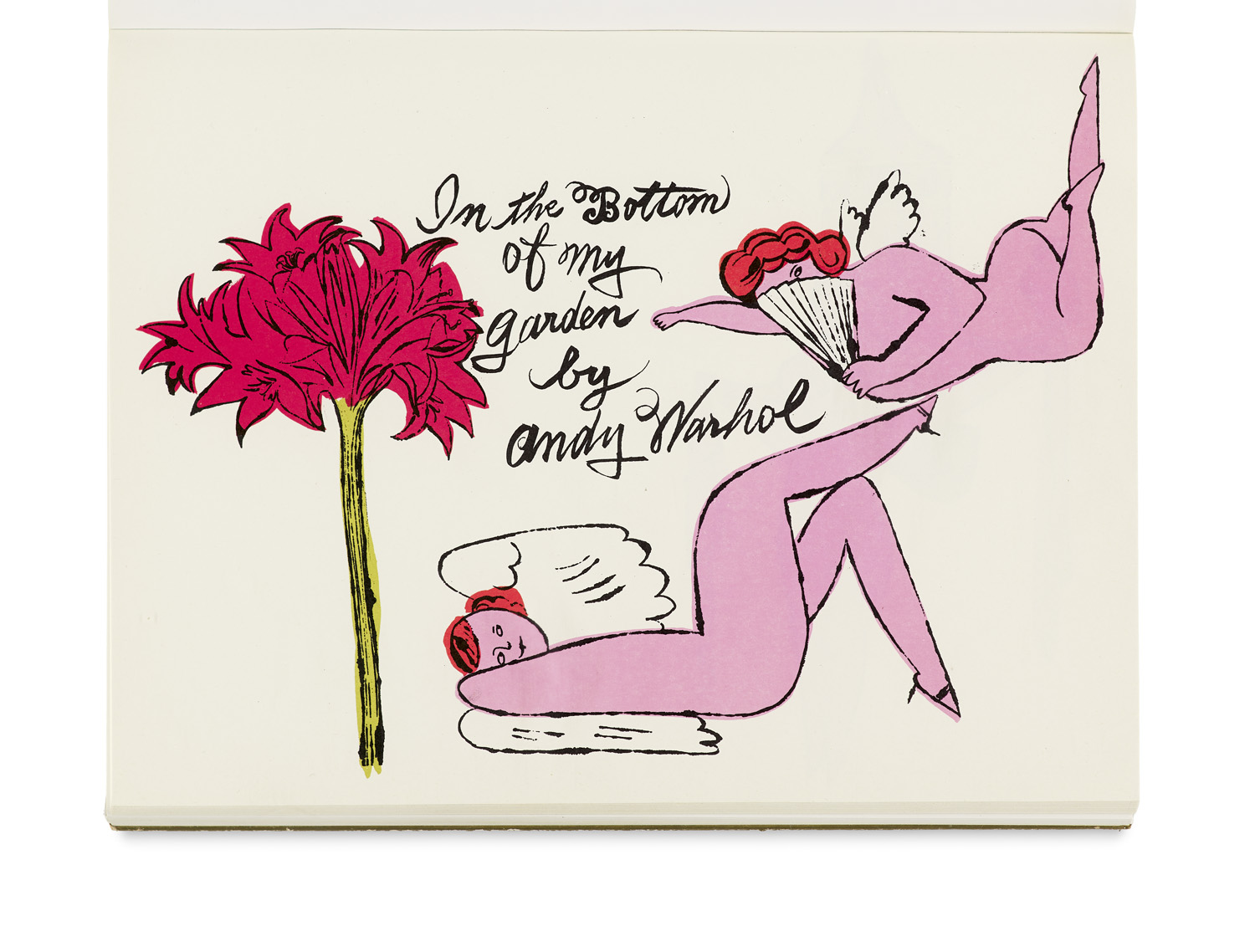 Modern Literature and Art – With 16 lithographs on blue paper, 36 (color) lithographs on smooth vellum and 7 lithographs on gold paper after original drawings by Andy Warhol. Golden illustrated original cardboard (slightly bumped and rubbed). - Interior well preserved. Excellent partly colorful prints.