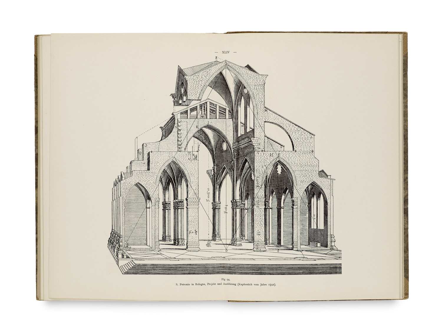 Ein Proportionsgesetz der antiken Baukunst und sein Nachleben im Mittelalter und in der Renaissance. Mit zahlr. Abbildungen auf 60 Tafeln. Strassburg, Trübner, 1895. 36 Textseiten, LX Tafeln 8°. Halbleinen (etwas berieben und lichtrandig).