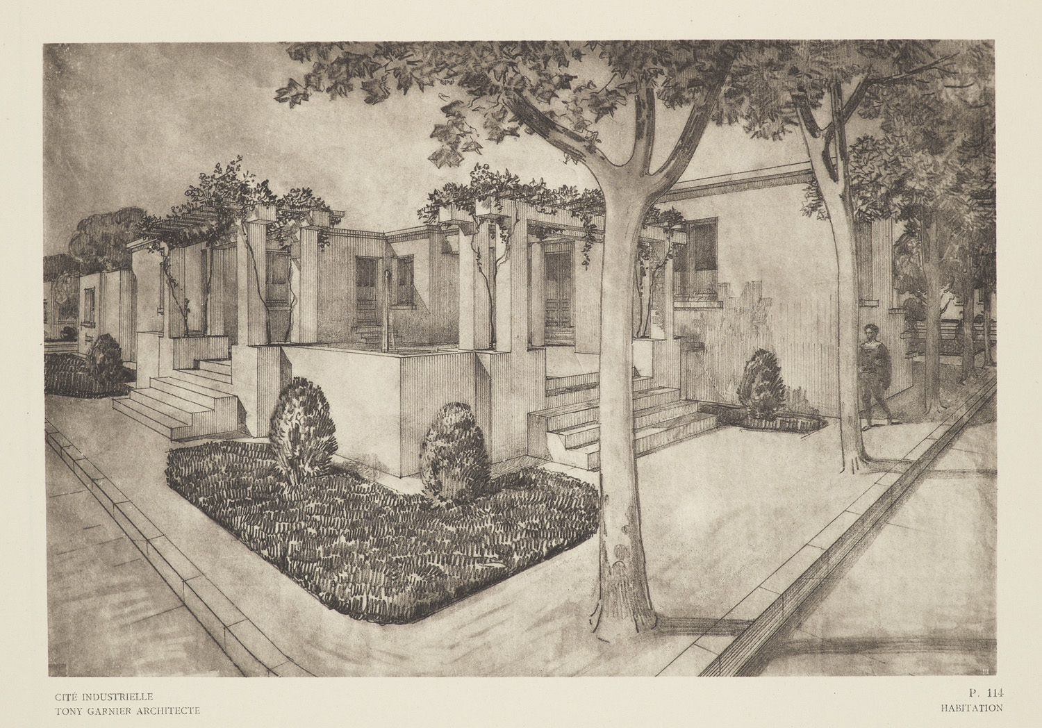 Une Cité Industrielle. Étude pour la Construction des Villes. Mit 157 (v. 164) Tafeln. Paris, Vincent, um 1918. 5 Bll., Tafeln. Quer-Folio. OHLwd.-Mappe mit DTitel (gebrauchsspurig).