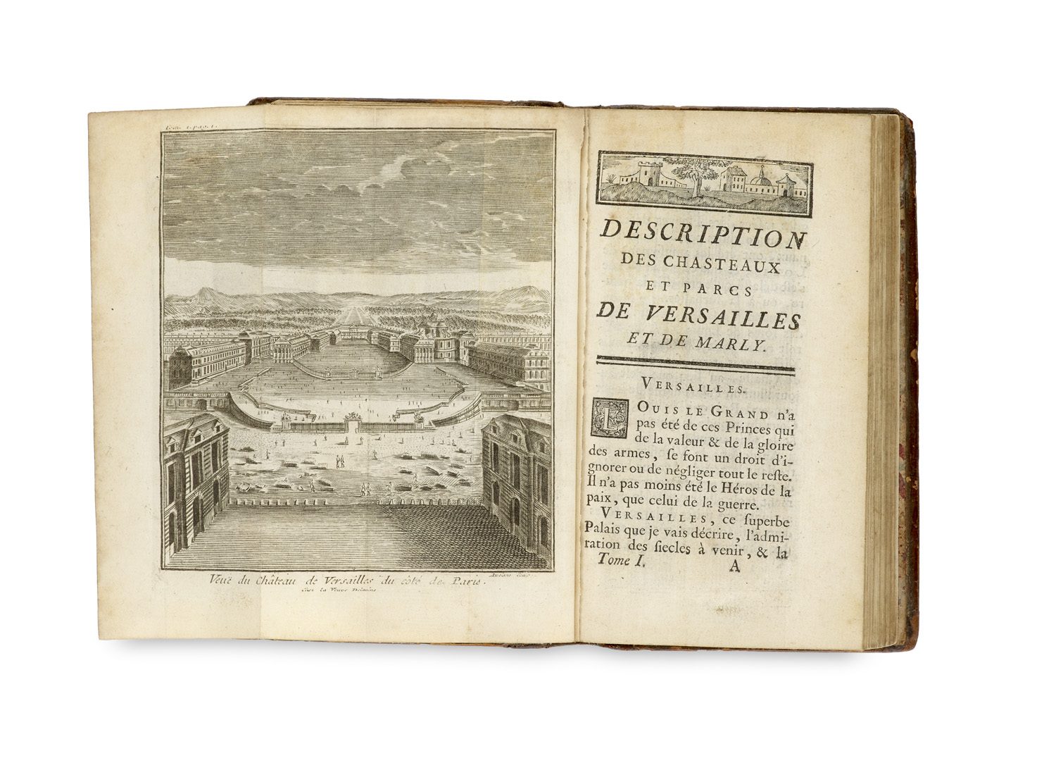 Nouvelle Description des Chateaux et Parcs de Versaille et de Marly. 2 Bde. Mit 16 Kupferstichen auf 15 Tafeln. Paris, Savoye, 1764. XVI, 328 S. 4 Bll., 381 S., 3 Bll. Kl.-8°. Ldr. mit RSchilden (berieben und bestoßen).