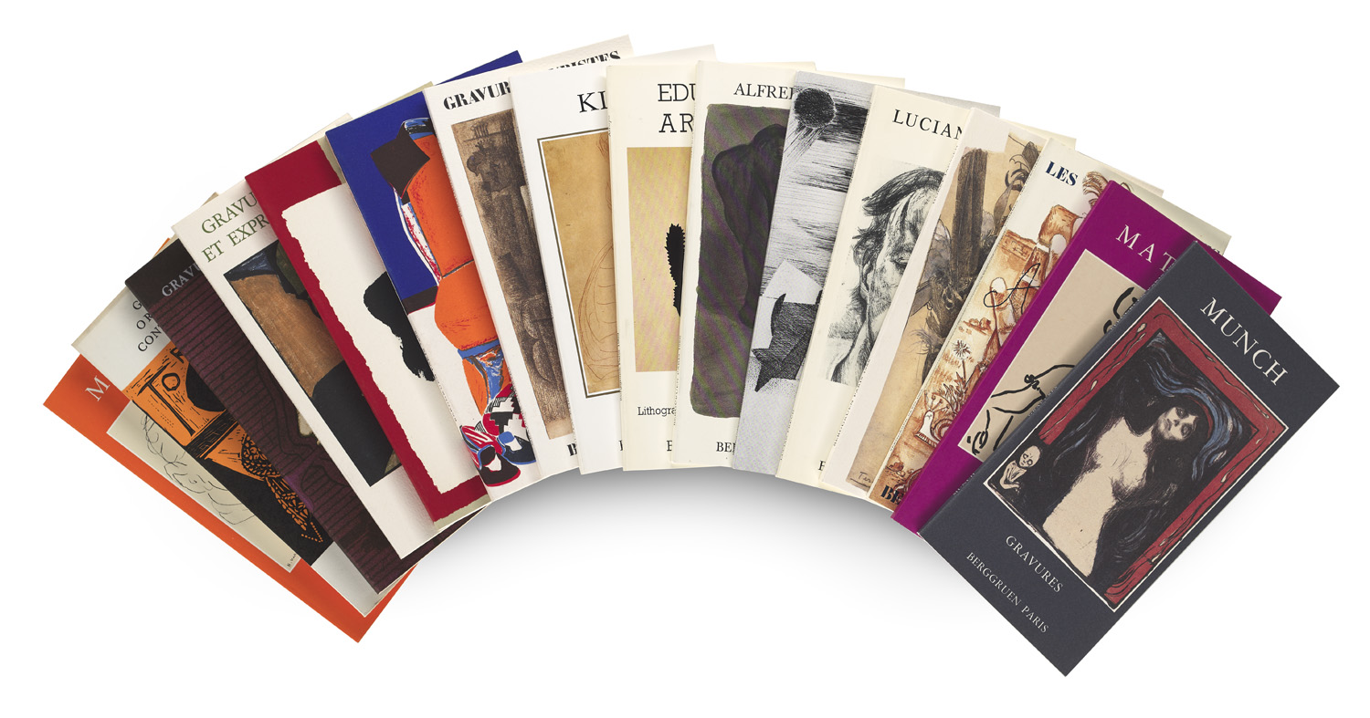 Moderne Literatur und Kunst – Enthält: Gravures originales contemporaines 1963. (Einband etw. licht- u. staubrandig). - Maitres-Gravures contemporains 1968, 1980 u. 1986. 3 Bde. Davon 2 Einbände mit OLitho von Paul Wunderlich u. Gerard Beringer. - Matisse. Dessins au pinceau. 1983. - Edvard Munch. Lithographies, eaux-fortes et gravures an bois. 1983. - Klimt. Vingt dessins. 1984. - Matisse. Vingt dessins. 1985. - Gravures cubistes 1985. Collection Weiss. - Gravures fauves et expressionistes 1985. - Alfred Kubin. Vingt dessins. 1986. - Alfred Courmes. Les Gravures. 1986. - Horst Janssen. Pastels. Aquarelles et Dessins. 1986. - Eduardo Arroyo. Lithographies, Gravures et Sculptures. 1989. - Lucian Freud. L'Oeuvre gravé. 1990. - Marcoussis, gravuer. 1996. - Dabei: Puzzle von Erró zur Ausstellung "Collages 1958-1988". (1992). - Insg. sehr guter Zustand.