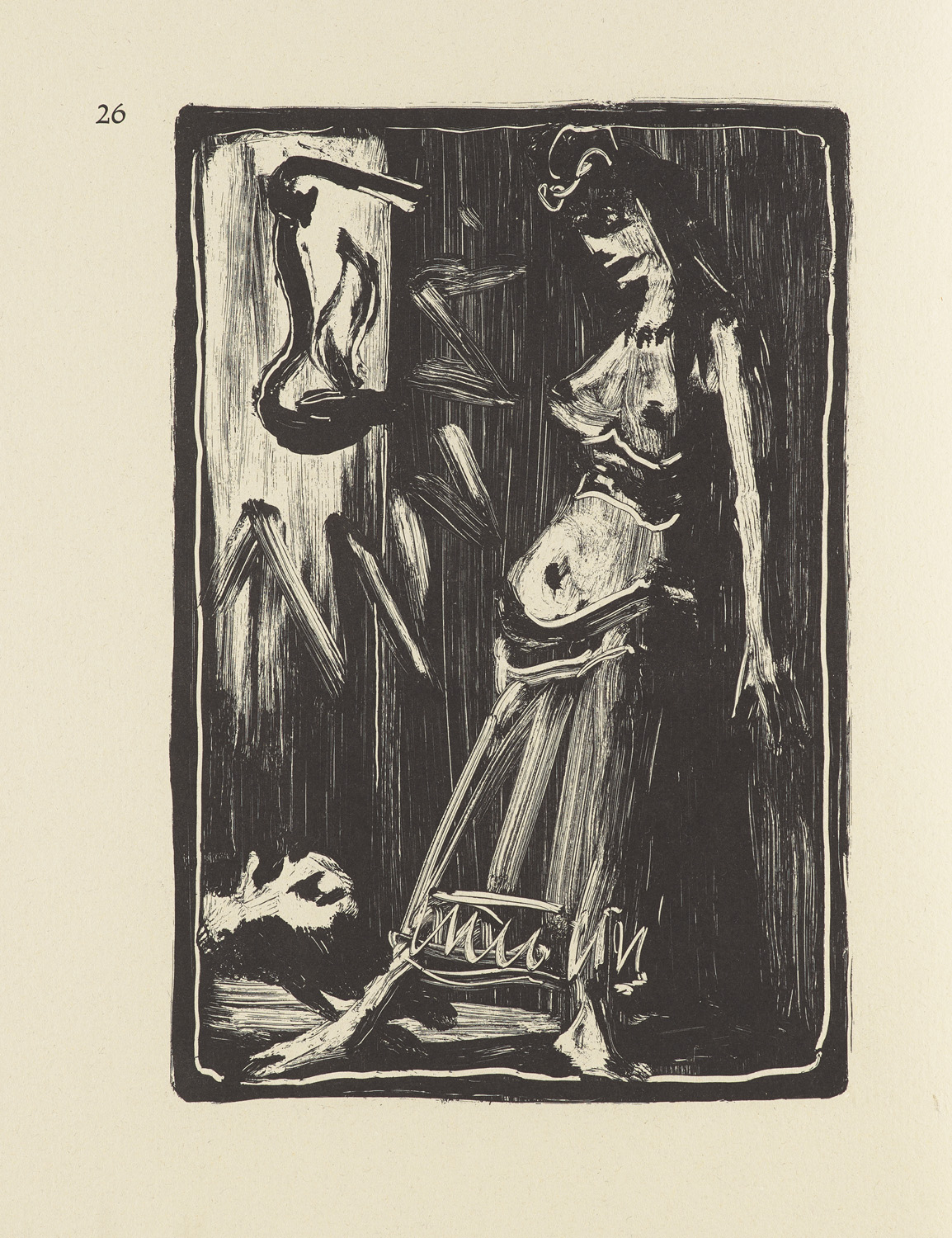 Das Buch Joram. Mit 7 Vetrographien von Hans Fronius. Frankfurt, 1962. Folio. 37 S., 1 Bl. nachgeb. Ldr. mit goldgepr. RTitel im HLdr. Schuber.