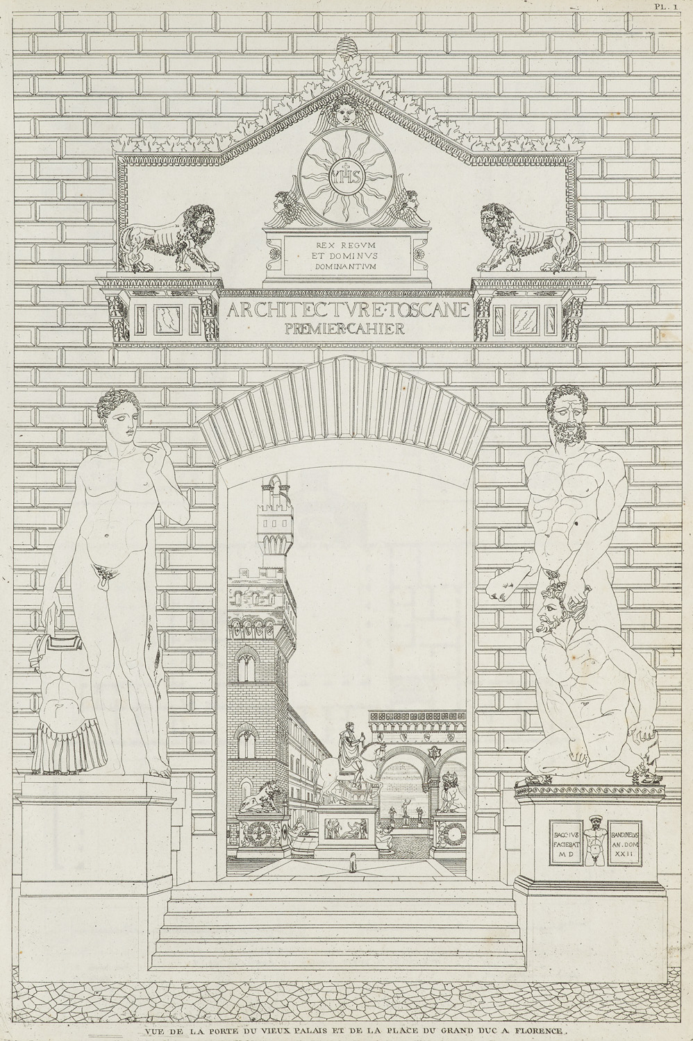 Architecture Toscane, ou palais, maisons, et autres édifices de la Toscane (...). Mit 109 Kupfertafeln. Paris, P. Didot L'Ainé, 1815. VII, 50 S., 1 Bl. Fol. Einfacher Pp. d. Zt. mit RSchild (etw. stärker beschabt, berieben, bestoßen u. fleckig, Rücken mit Bezugsfehlstellen).