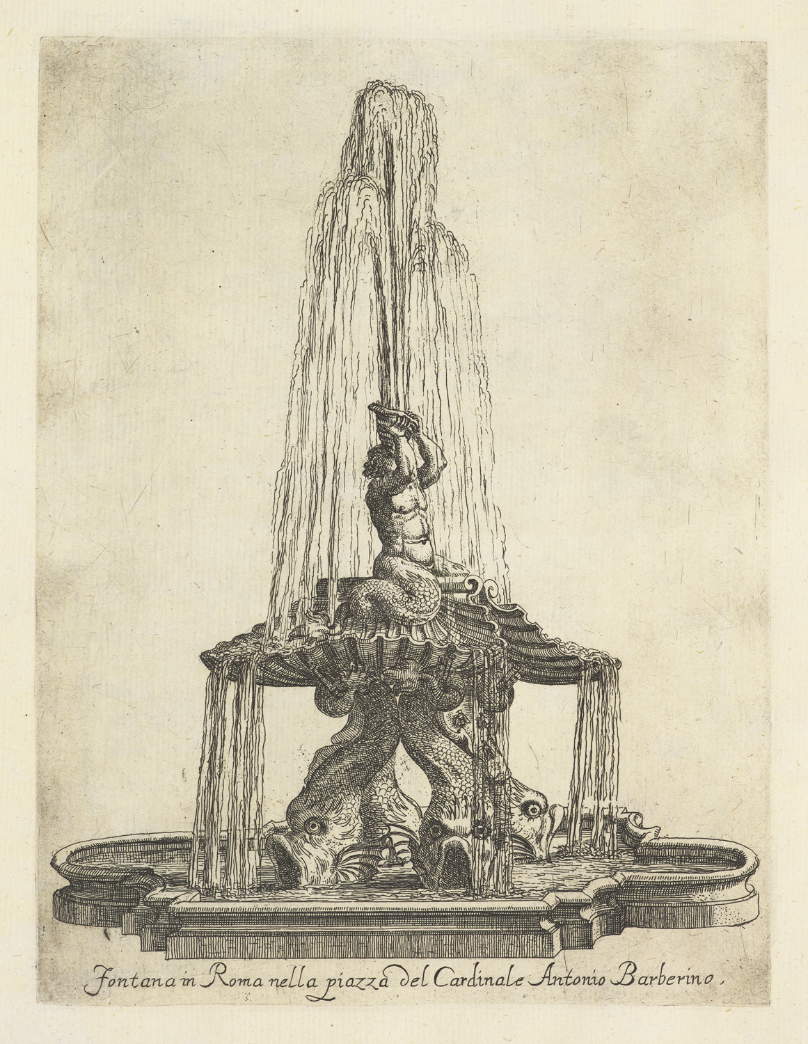 Nuova Racolta di Fontane che si vedano nel alma citta di Roma, Tivoli e Frascati. Mit 45 Original-Radierungen auf 29 Blättern (darunter gest. Titel). Rom, Giovanni Giacomo de Rossi, (um 1645). Quer-Folio. Mod. Kalbldr. (etwas berieben).