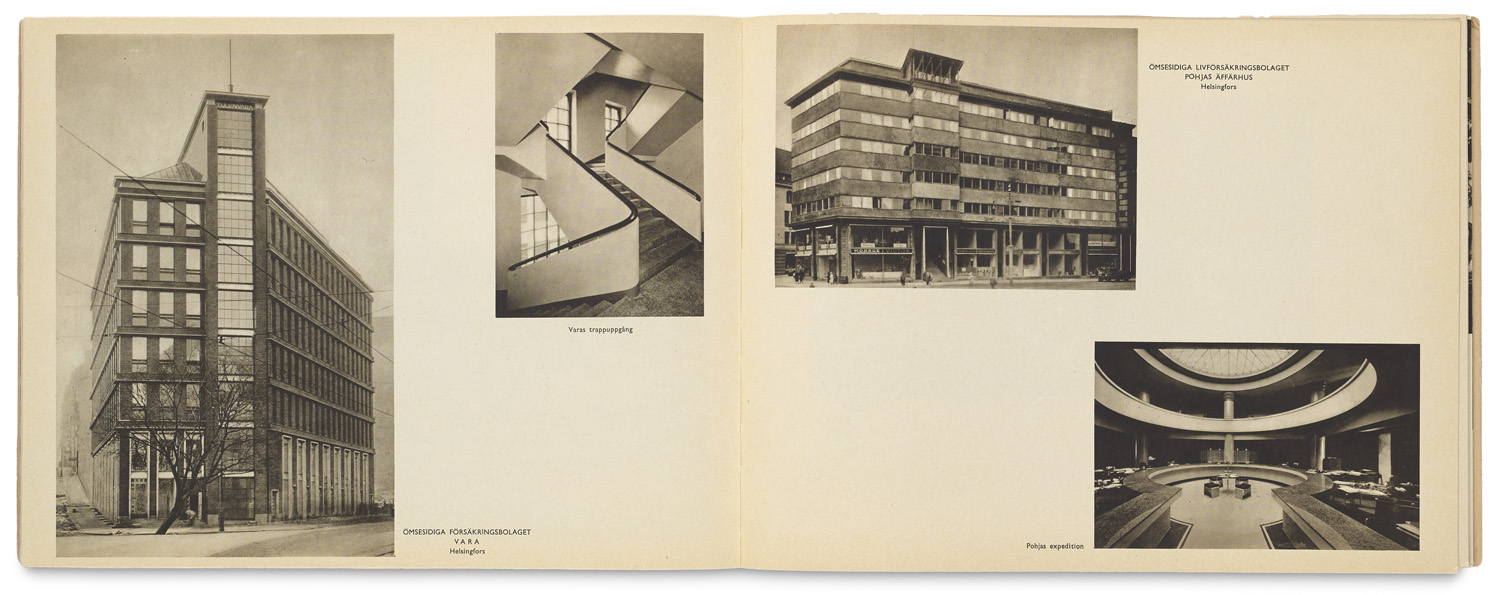 Architecture – With several black and white pictures. Original booklet. (Corners bumped, with minimal staining.) - Scarce publication on modern Finnish architecture with numerous black and white photographs. - Blind stamp of engineer Emil Holmberg on cover. - Edges very slightly browned. In good condition.