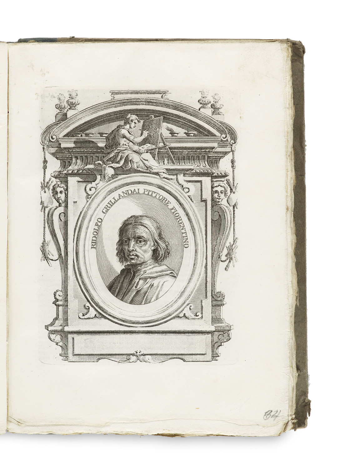 Vite de' piu eccellenti pittori, scultori e architetti. Band 3 (von 3). Mit gest. Textvignette, 2 gefalt. Kupfertafeln und 16 Porträtkupfertafeln. Rom, Pagliarini, 17609. 4°. XXIII, 656, 23, 86 S., 1 Bl. (Mod.) HLwd. mit RTitel. (etw. fleckig).