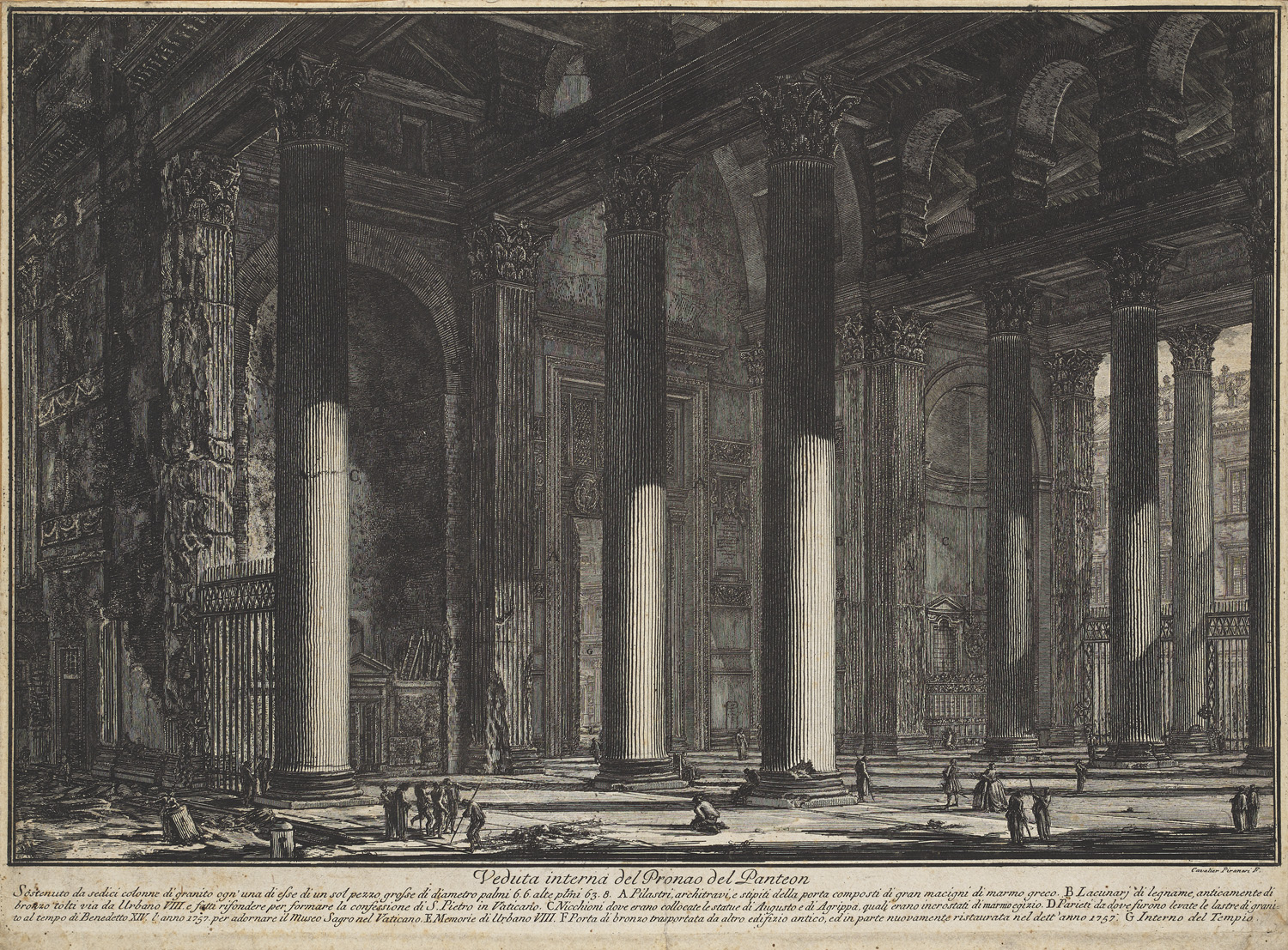Veduta interna del Pronao del Panteon. (1769). Radierung auf Bütten. 38,7 x 53,3 cm (40 x 54 cm). In der Platte bezeichnet "Cavalier Piranesi F.".