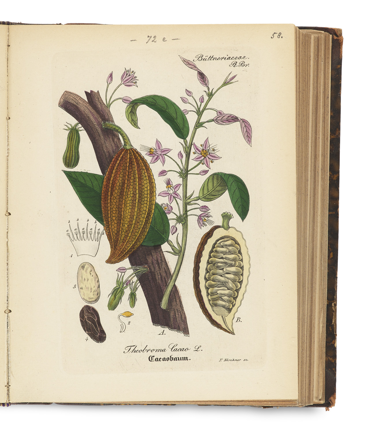 Naturwissenschaften – 5., gänzlich umgearb. Auflage. - Nissen 53. - Vgl. Ferchl 14 u. Pritzel 100749 - Das Werk enthält "naturgetreue Abbildungen nebst Beschreibungen in botanischer, pharmacognostischer und pharmacologischer Hinsicht .. zum Gebrauche für Apotheker, Aerzte und Droguisten". Neben Gräsern, Blumen, Gewächsen, Stauden europäaischer Breitengrade enthäalt das Werk auch zahlreiche exotische Pflanzen, wie Banane, Kakaobaum, Zitrone etc. sowie einige Pilze. - Notizen und Exlibris auf Vorsatz, Textseiten etwas gebräunt.
