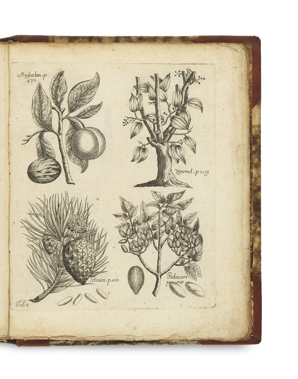 Naturwissenschaften – Erste Ausgabe. - Pritzel 10506 - Blake 500 - Ferchl 598 - Hirsch/H. V, 1048 - Bartholomaeus Zorn (1639-1717), dessen vorliegendes Handbuch aus Thomas Pancows "Herbarium" hervorging, war praktizierender Arzt in Berlin. Er beschreibt Kräuter und Gewächse im Hinblick auf deren Verwendung in der Pharmazie. - Fehlen 2 Bll. (S. 651-54), S. 550-565 mit kl. Wurmspur (mit wenig Textverlust), insgesamt gutes, sauberes Exemplar.