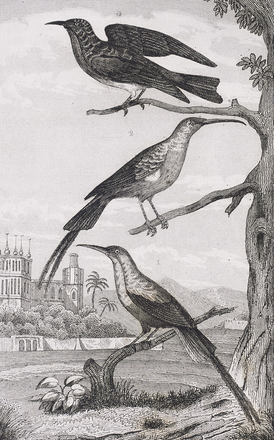 Natural Sciences – 7 (of 9) vols. With engr. frontispiece and approx. 260 engr. plates (1 fold.). - Contemp. green half leather with gilt stamped title to spine and spine gilt (partially rubbed, corners bumped). - First vol. with book dealer's label on inner board, partially foxed.