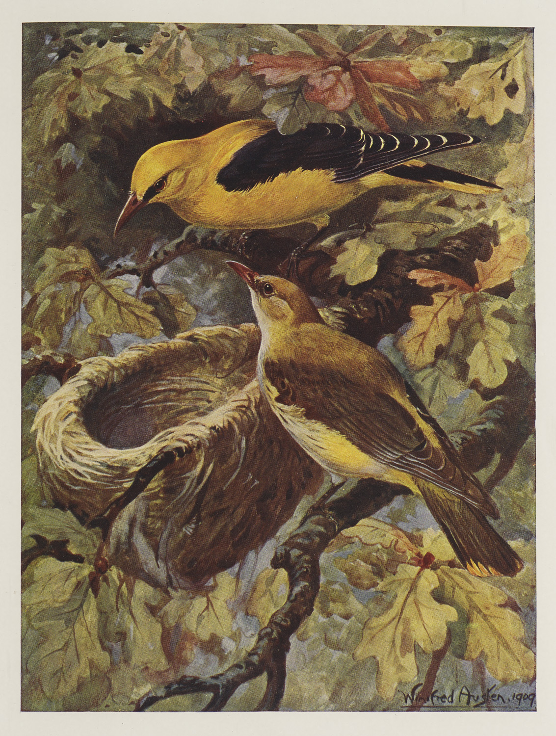 The British Bird Book. An Account of all the birds, nests and eggs found in the British Isles. 4 Bd. Mit zahlreichen farbigen und nicht farbigen Tafeln, sowie einigen Zeichnungen. 4°. Edinburgh, T.C. & E. C. Jack, 1911-1913. XVIII. 448 S. XII. 540 S. XII. 609 S. XII. 692 S. HLdr mit Blindprägung und RSchild mit goldgepr. RTitel (berieben und bestoßen. Mit minimalen Fehlstellen).