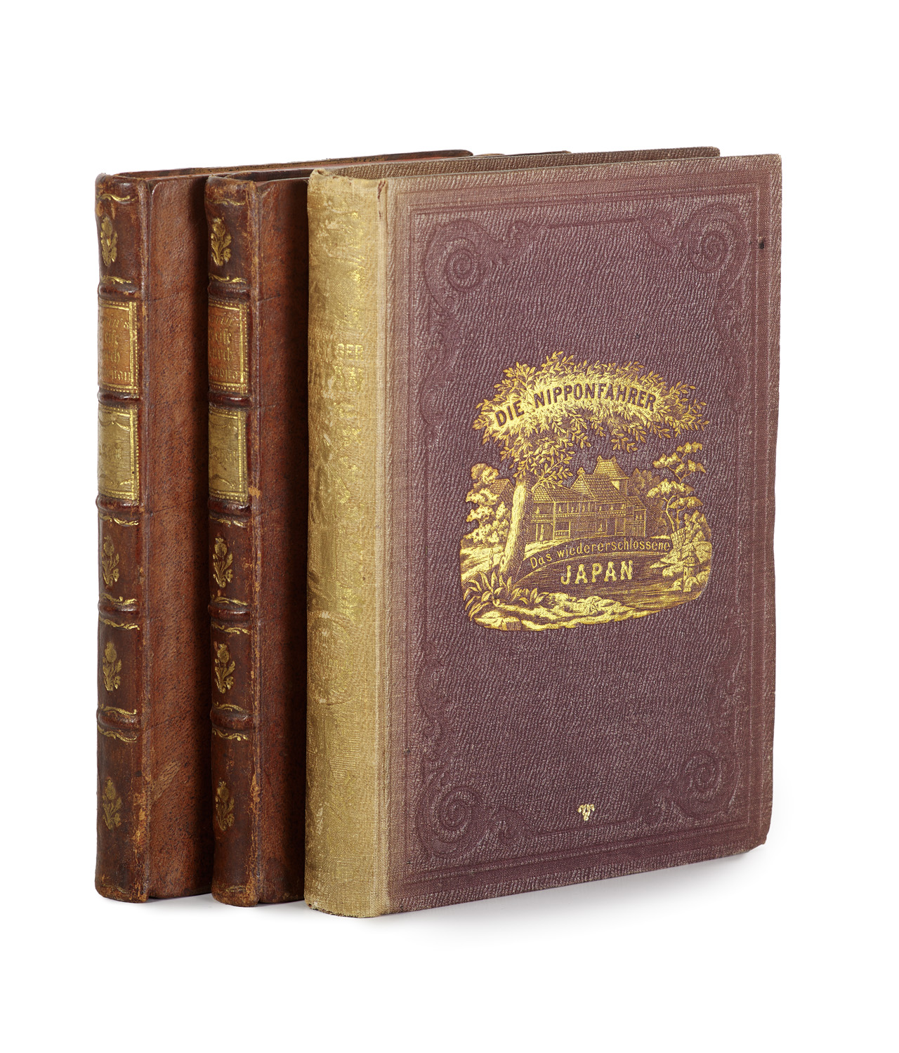 Geographie und Reisen – Erste dt. Ausgabe. - Brunet 20685 - Fromm V, 19915 - Der Verfasser wirkte ab 1777 16 Jahre lang als Missionar in Indien, wobei er auf zahlreichen Reisen nahezu das ganze Land durchstreifte. Ausführlich berichtet er über Land und Leute, wobei er insbesondere auf Sitten und Gebräuche sowie auf das Kastenwesen eingeht und viele wertvolle, bis dahin mitunter völlig unbekannte Informationen über das Land gibt. - Im Anhang mit einem kurzen Wortverzeichnis der Tamul-Sprache, sowie einem Auszug aus dem Werk von Legoux de Flaix, die Pagode von Chalamburam betreffend. Die Faltkupferkarte zeigt Indien bis zu den Molukken, die Kupfertafeln eine "Syrische Seidenstaude (Schwalbenwurzel - Bombasc), den Sonnenschirm und Mandelbaum sowie 2 Ansichten des Tempels von Chalambron. - Gebräunt bzw. stockfleckig. - Dabei: F. Steger u. H. Wagner, Die Nippon-Fahrer oder das wiedererschlossene Japan. Mit zahlr. Abb. Lpz., Spamer, 1861 (Maler. Feierstunden). OLwd. (R. verblasst, innen etwas gebräunt).