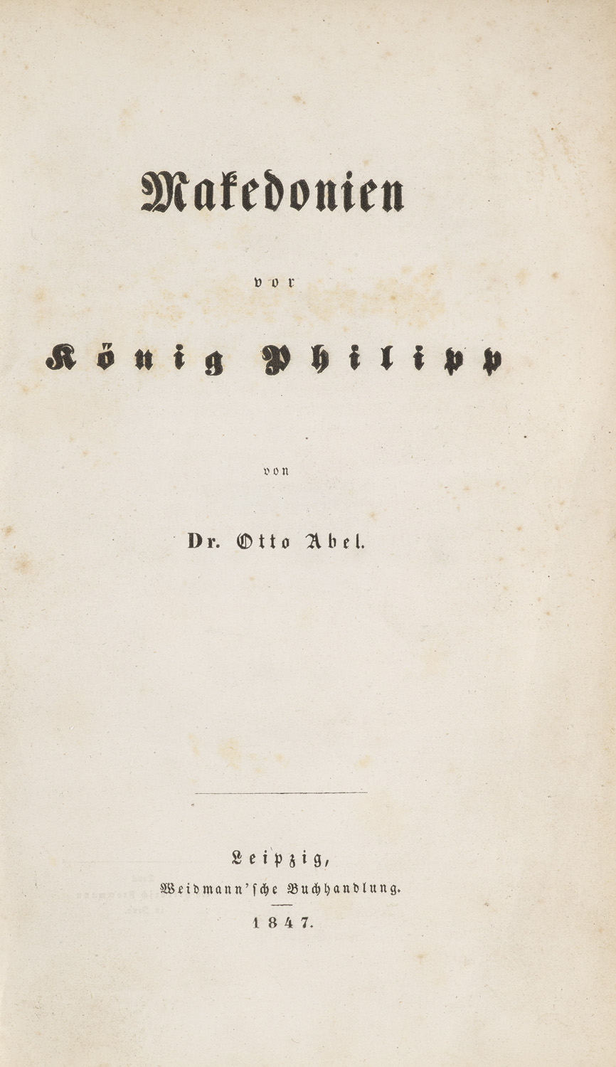 Makedonien vor König Philipp. Leipzig, Weidmann, 1847. XII, 268 S. HLwd. d. Zt. mit goldgepr. RTitel (etwas berieben, Rücken verfärbt).