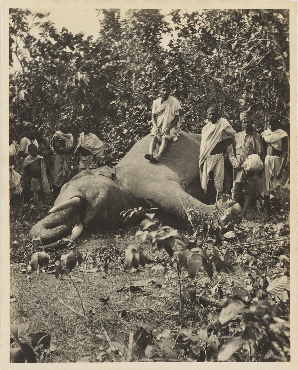 Photography – India - Collection of 60 photographs depicting, among others, big game hunting. Vintages. Silver gelatin prints. - The photographs, some of which are annotated and commented in English on verso, show, among other things: cobras, hunted animals (elephant, leopard, bear, wild boar), locals, Palestine Police, approx. 28 portraits and group photos (Stella and John Dixie, Sally Dixie, Elsie and Wil Dixie). - Some on Velox and Agfa Lupex photographic paper. - Some creased and with minor marginal defects, a few torn corners, otherwise good condition.