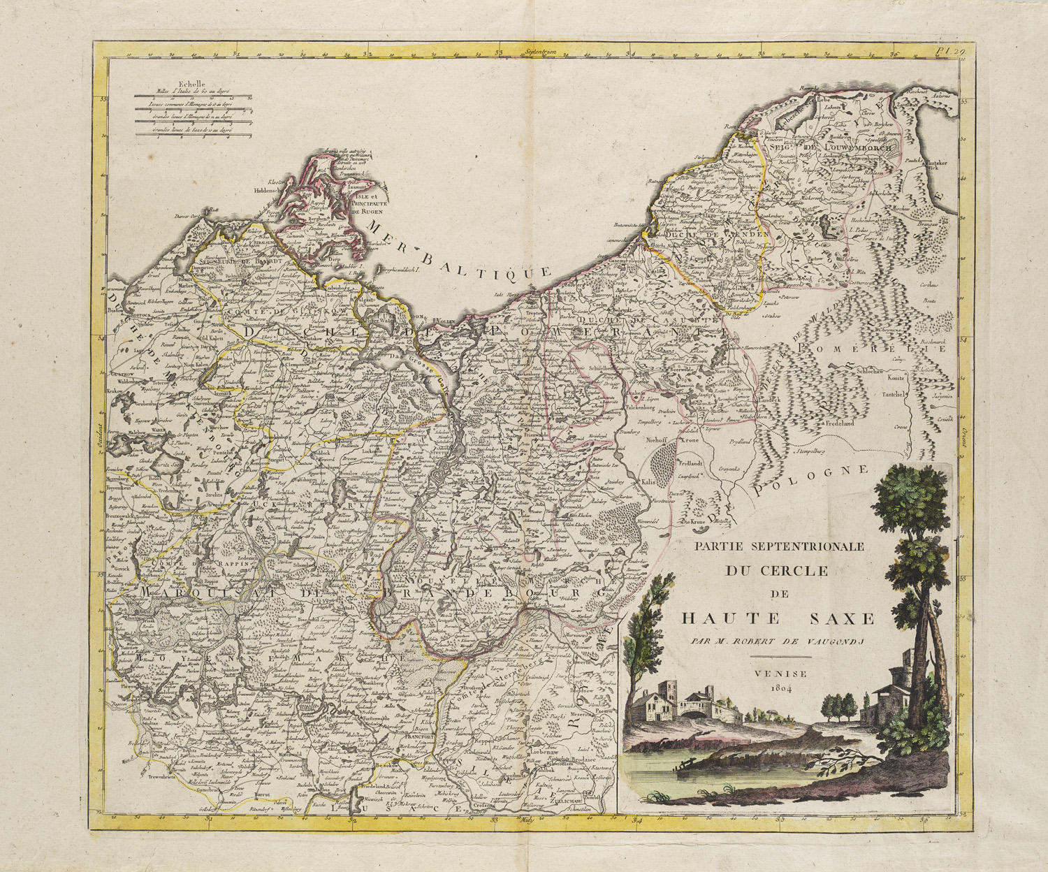 Partie Septentrionale du Cercle de Haute Saxe. Venedig, 1804. Grenzkolorierte Kupferstich Karte auf Velin, mit gestochener, kolorierter Titelkartusche. 49,5 x 55,5 cm (54 x 67 cm).